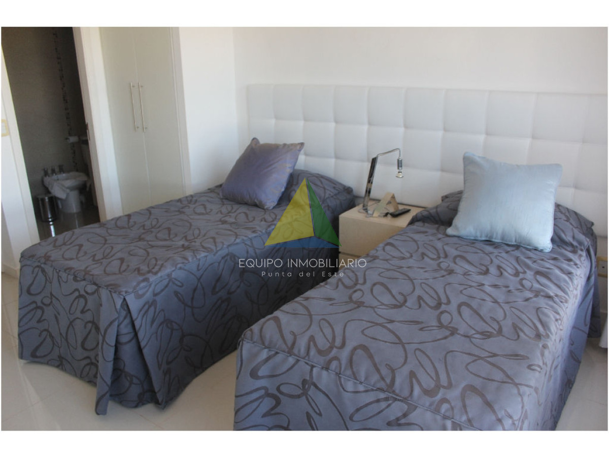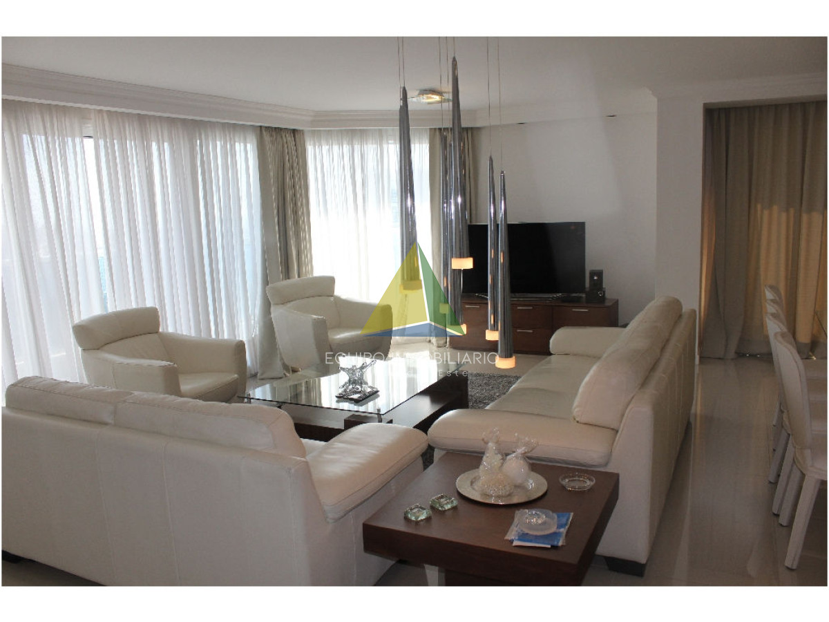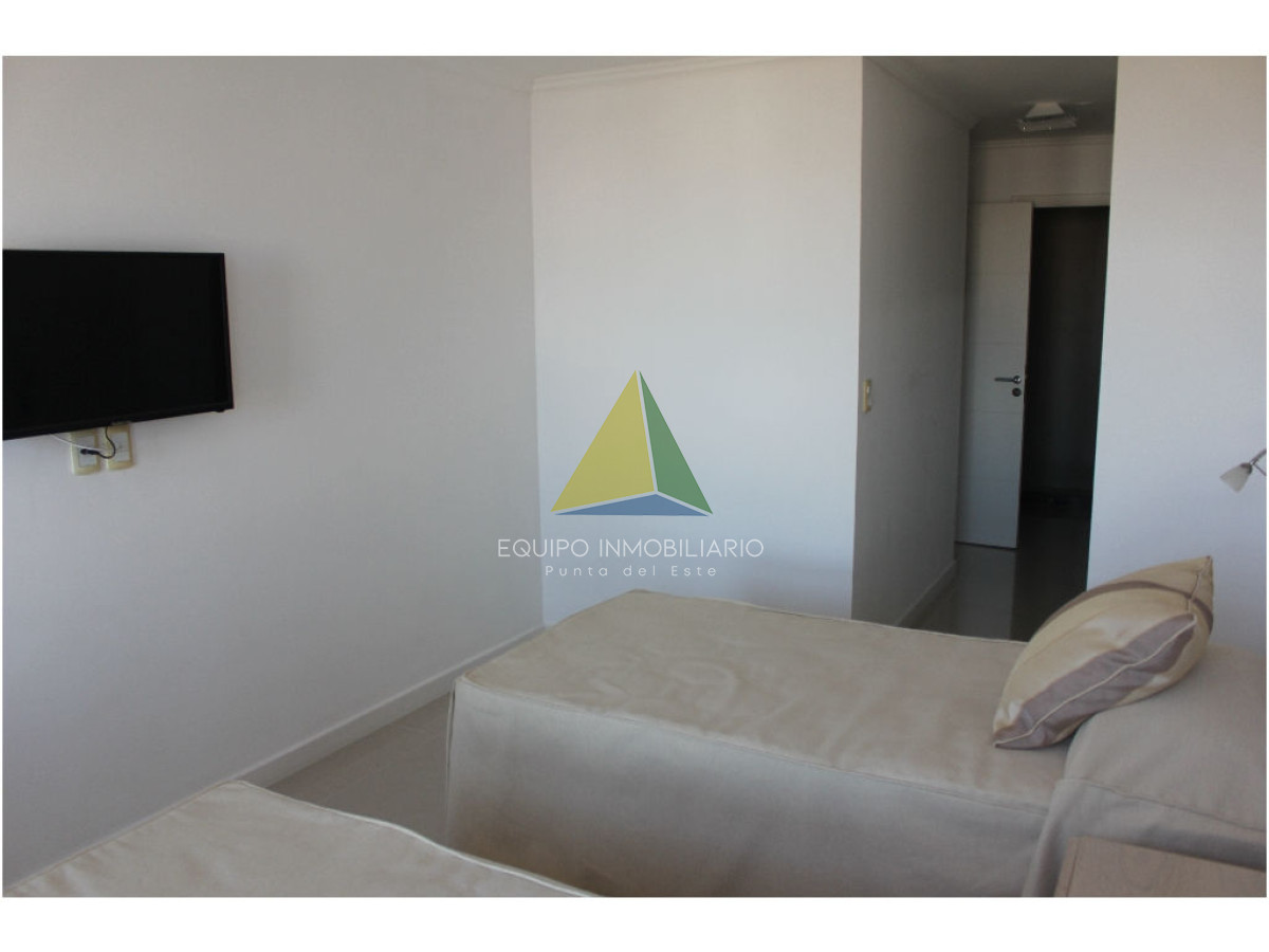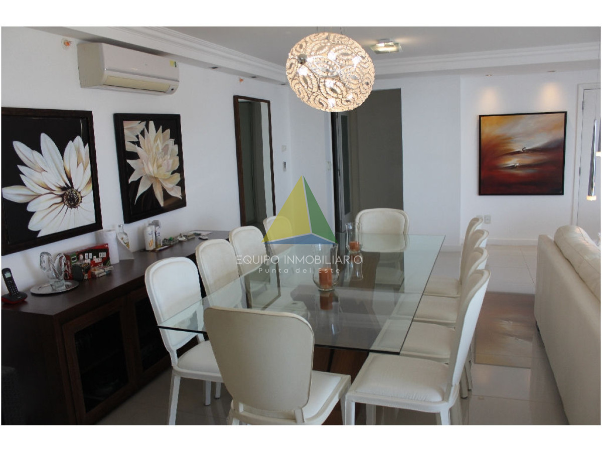 apartamento con vista a playa mansa - Ref : EQP1853 Espectacular apartamento con excelente vista a playa mansa y playa brava. Cuenta con 3 dormitorio, 3 baños, 2 en suite, dependencia de servicio. Lavadero, con lavarropas y secarropas. Excelentes servicios brinda la torre. Consultenos!!