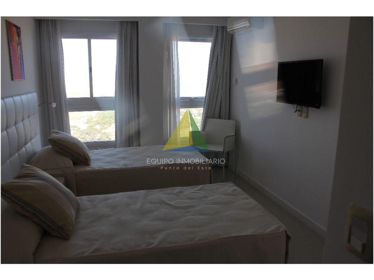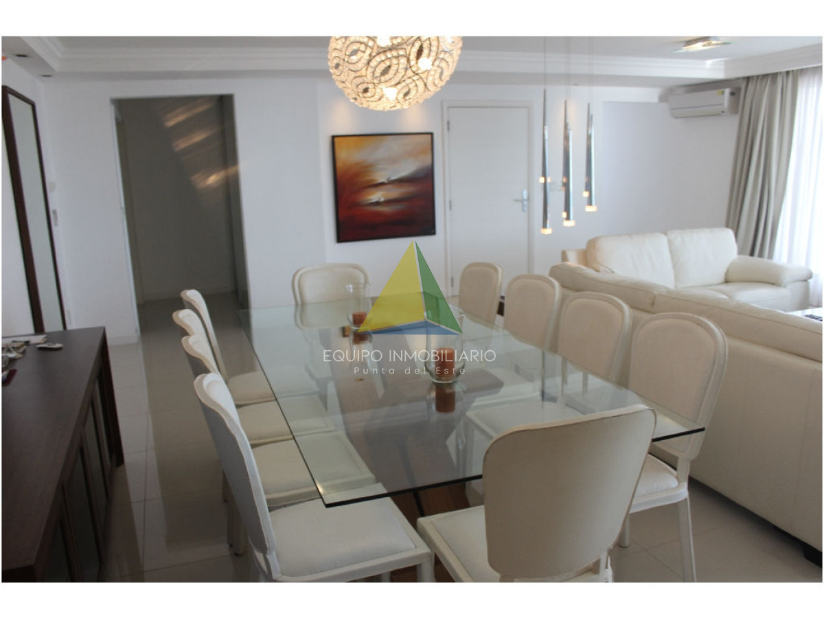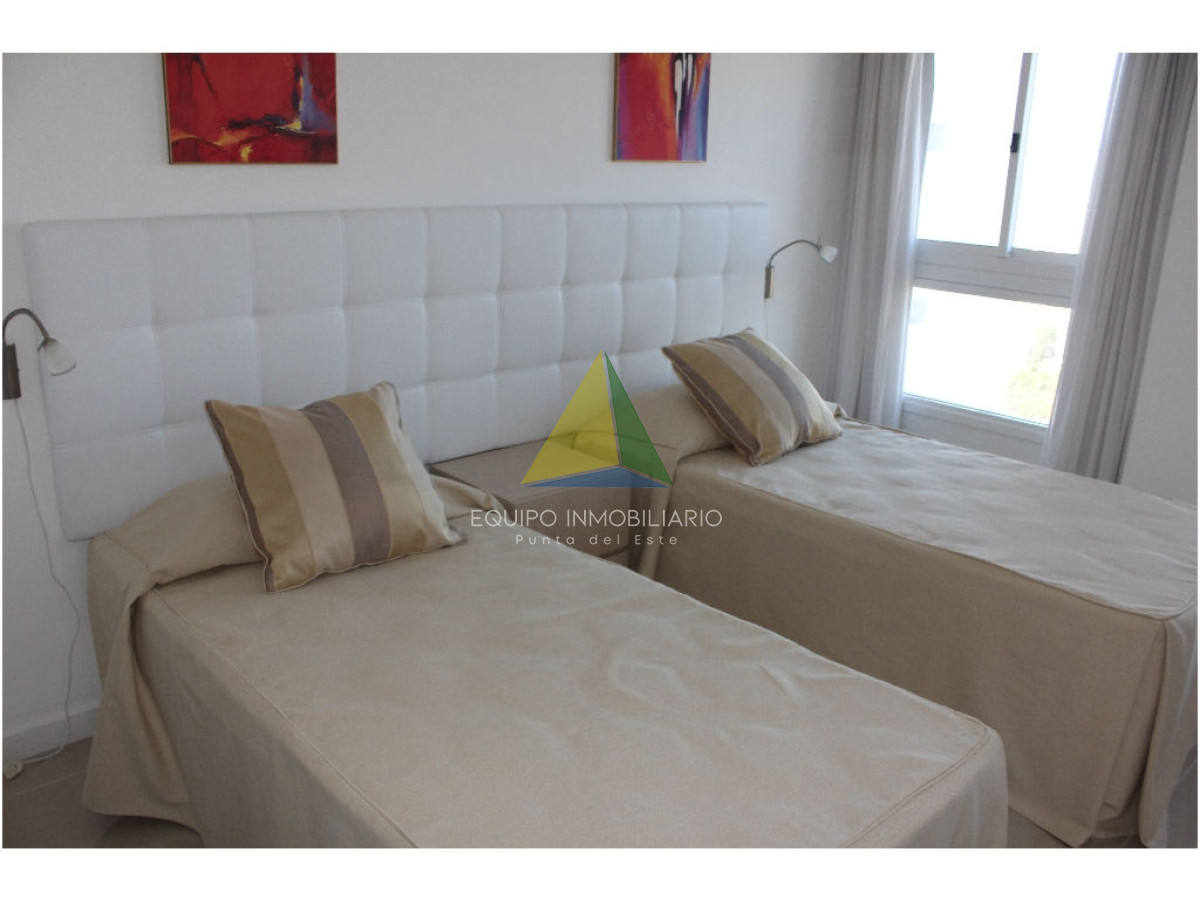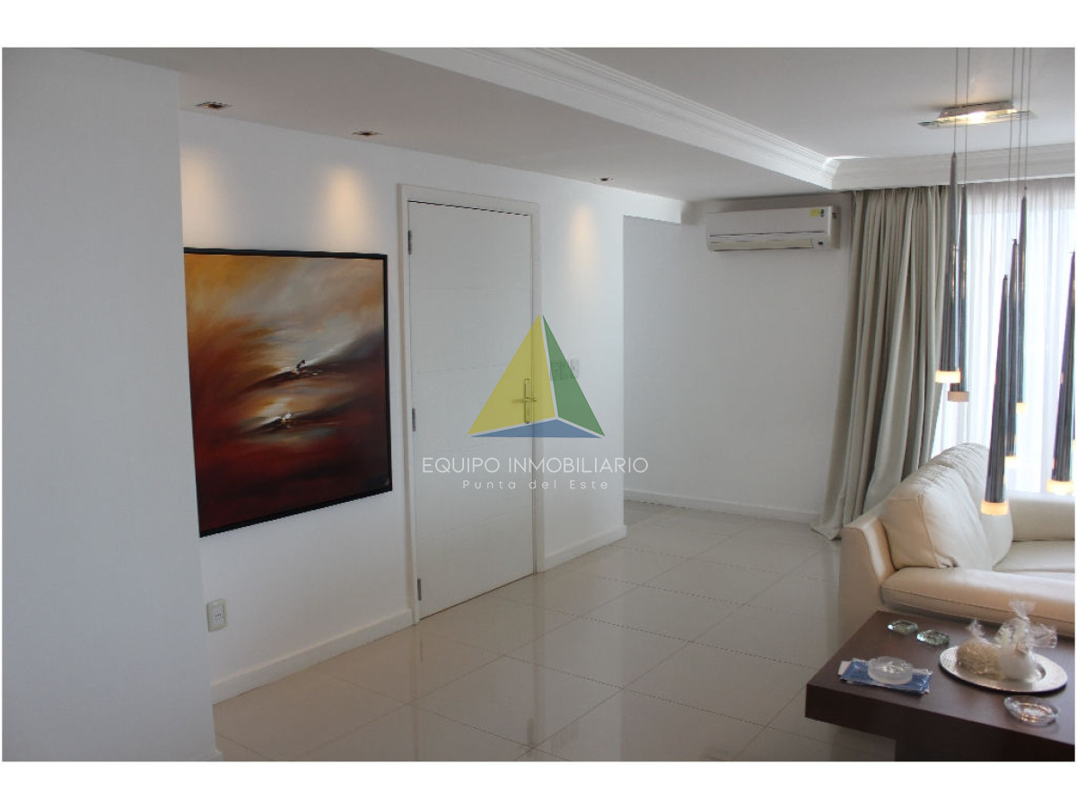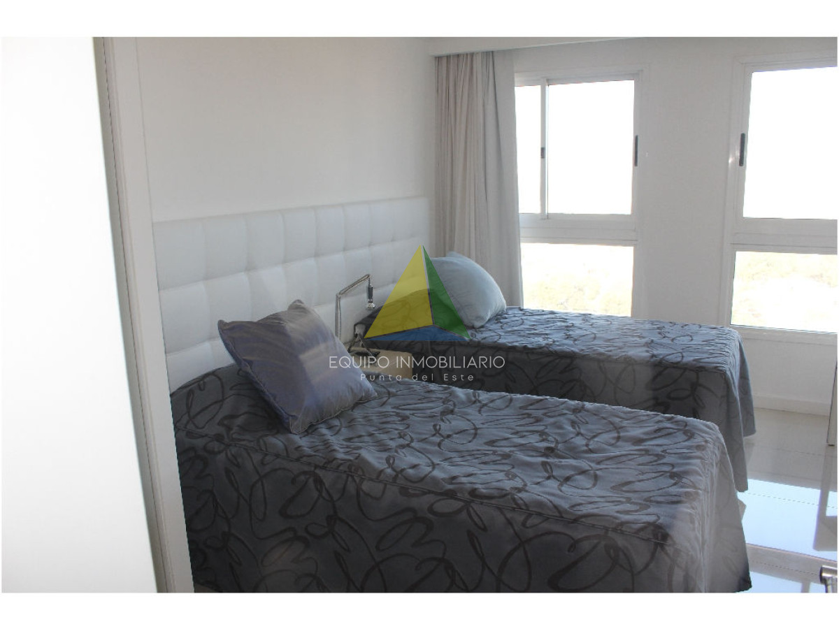 apartamento con vista a playa mansa - Ref : EQP1853 Espectacular apartamento con excelente vista a playa mansa y playa brava. Cuenta con 3 dormitorio, 3 baños, 2 en suite, dependencia de servicio. Lavadero, con lavarropas y secarropas. Excelentes servicios brinda la torre. Consultenos!!
