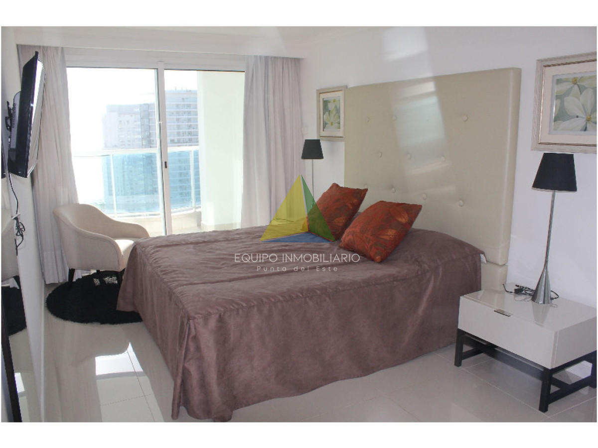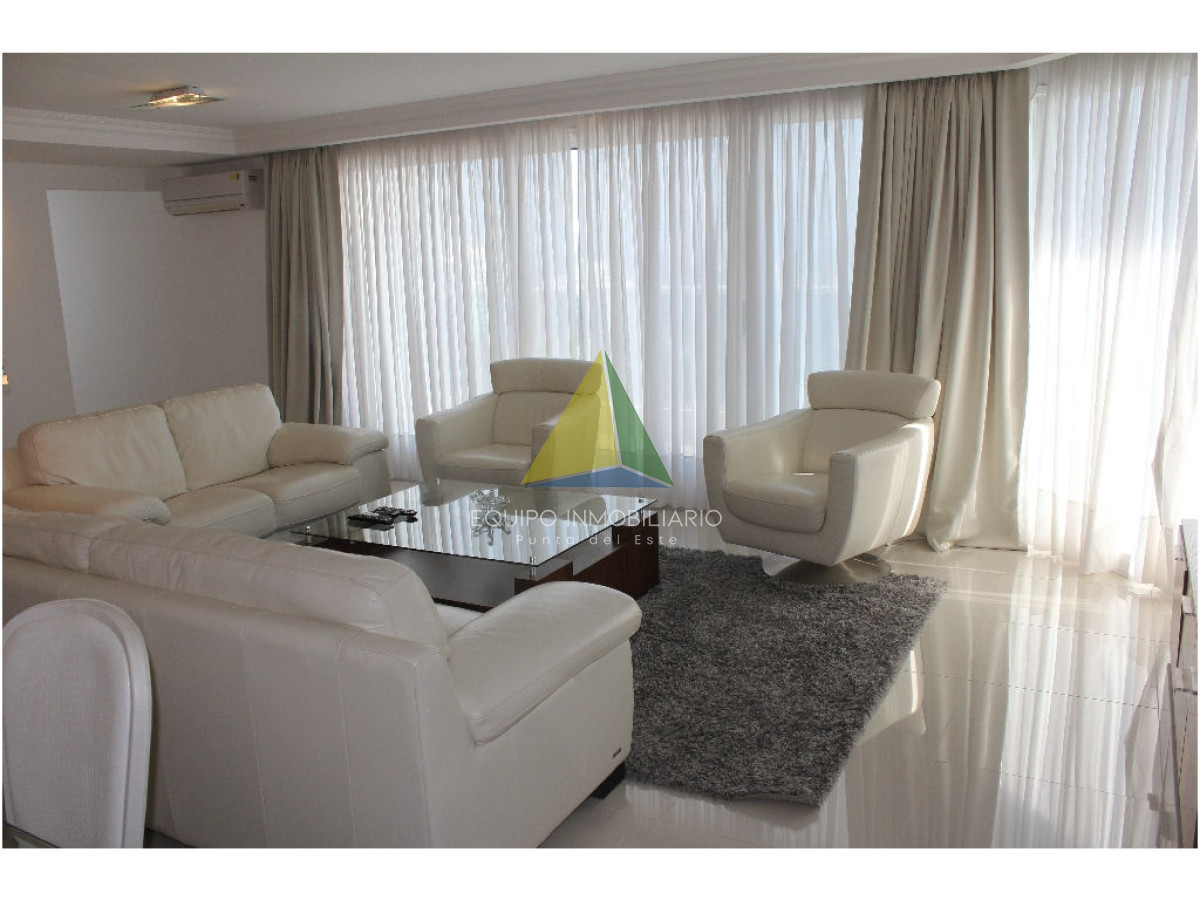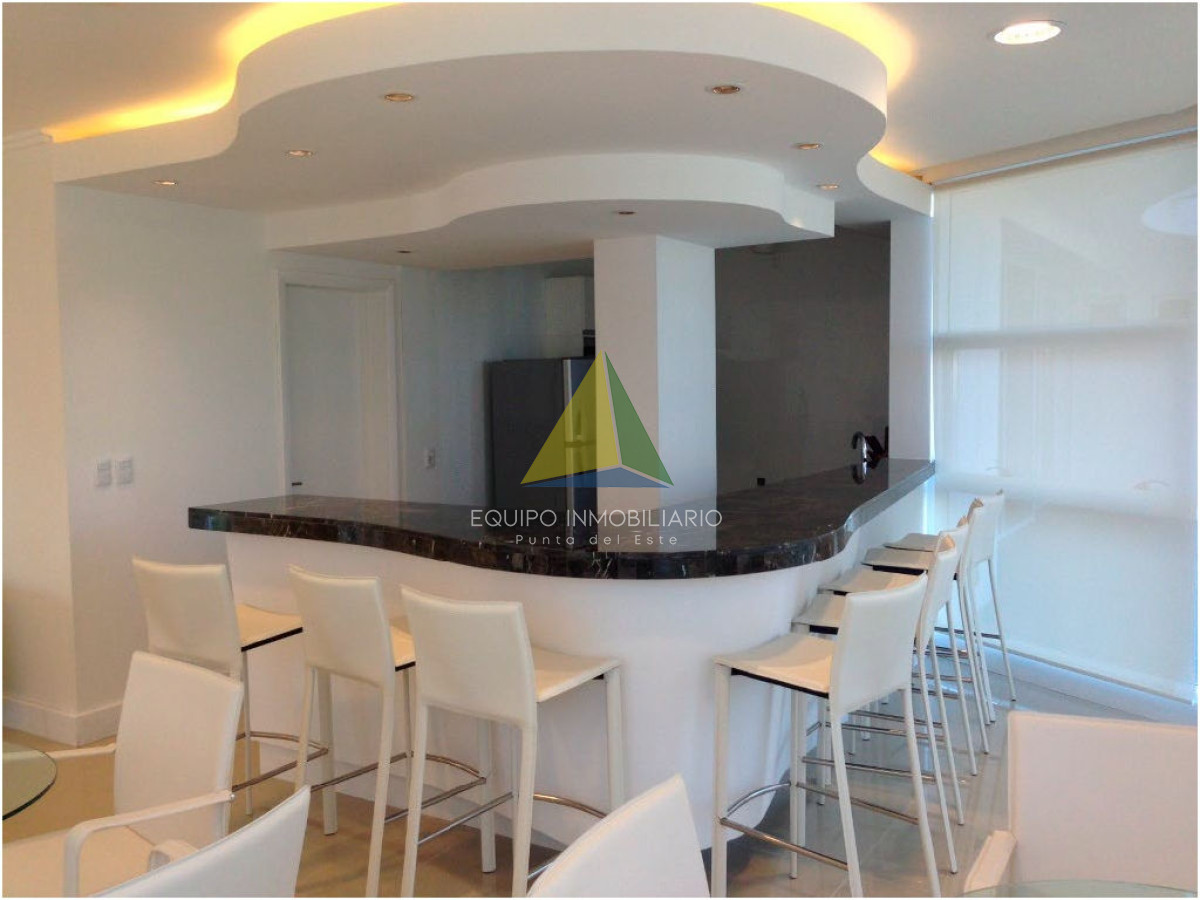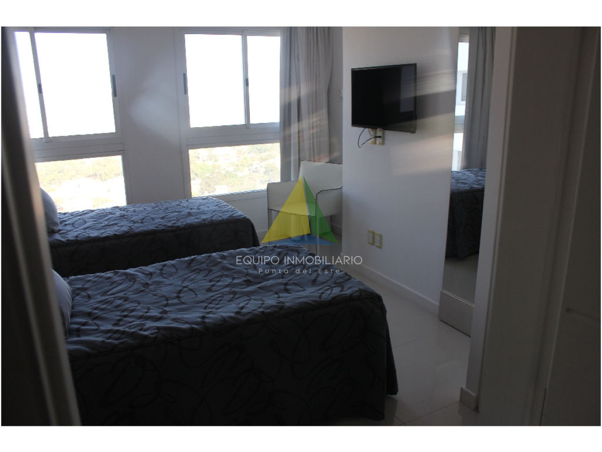 apartamento con vista a playa mansa - Ref : EQP1853 Espectacular apartamento con excelente vista a playa mansa y playa brava. Cuenta con 3 dormitorio, 3 baños, 2 en suite, dependencia de servicio. Lavadero, con lavarropas y secarropas. Excelentes servicios brinda la torre. Consultenos!!