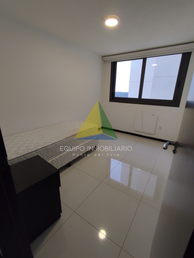 Muy lindo apartamento en Torre Stradivarius - Punta del Este - Ref : EQP2867 Muy lindo departamento en Torre Stradivarius, piso alto con linda vista, living comedor con balcón, cocina definida con terraza lavadero. 2 dormitorios, uno con cama matrimonial y el segundo con una cama de una plaza. Calefactores eléctricos (calefacción) y garaje. A 6 cuadras del mar. La Torre cuenta con servicios varios entre ellos recepción las 24 hs, piscina, gimnasio, sala de juegos, parrilleros, entre otros.
