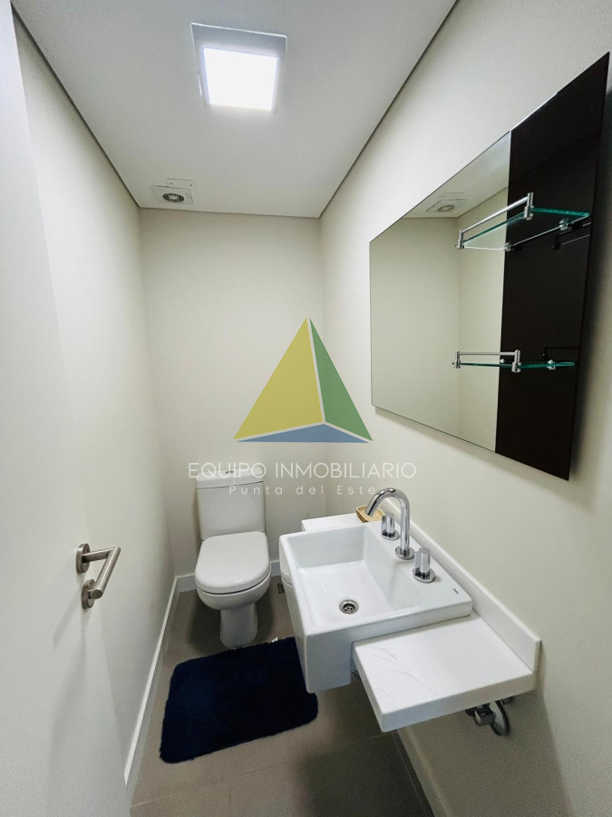 Apartamento en venta, Punta del este. - Ref : EQP5918 Espectacular unidad en torre de categoría con todos los servicios. Compuesto por 1 dormitorio y 1 baño + Toilette. Living - comedor amplio, Cocina Completa. Terraza y Cochera. El edificio cuenta con piscina exterior e interior climatizadas. Spa con jacuzzi. Sauna seco y húmedo. Terraza con 4 parrilleros con vista al mar. Sala de cine, sector de playstation, kids room, gimnasio, micro cine, cancha de tenis. Sala para masajes. Peluquería