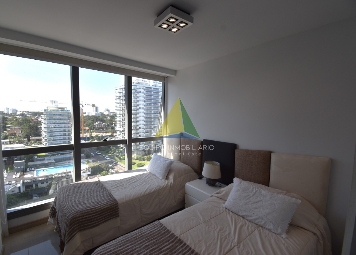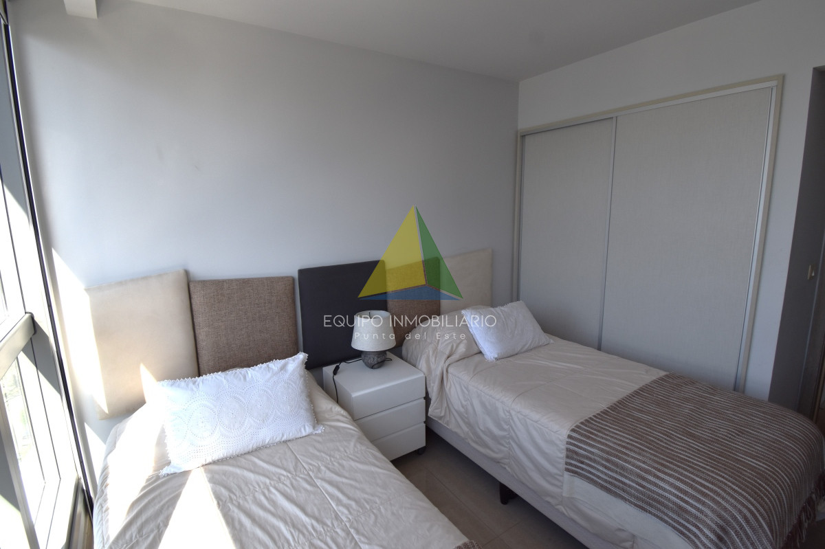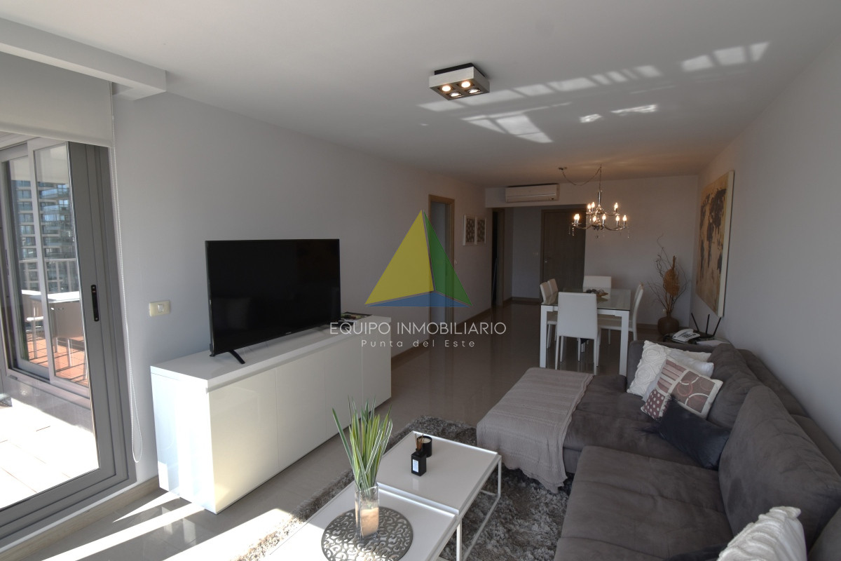 Apartamento en Torre con todos los amenities - Ref : EQP5927 Cómodo apartamento en excelente estado, living-comedor, terraza con vista a La Playa Mansa, 2 dormitorios, 2 baños, cocina, lavadero y garage.