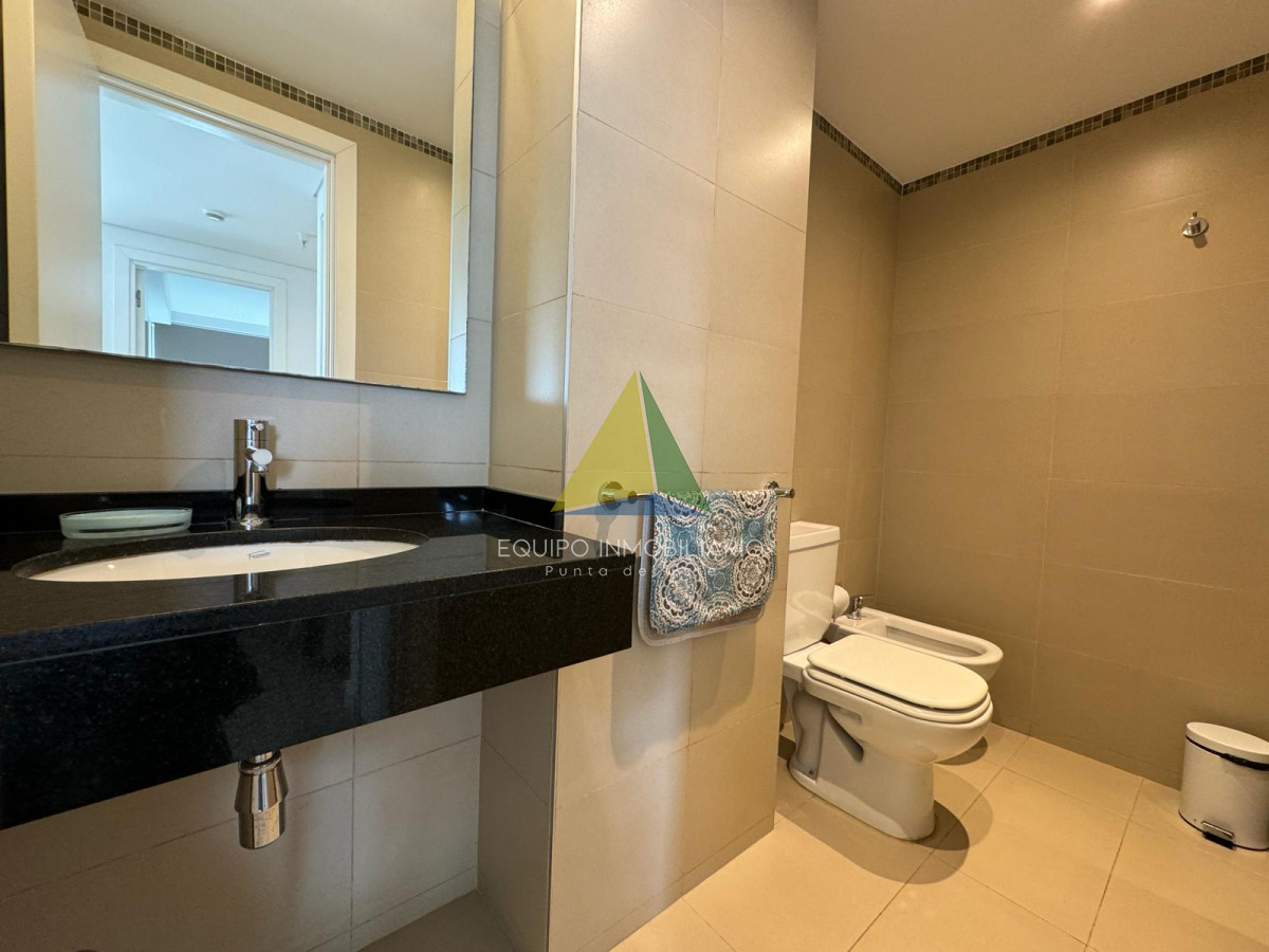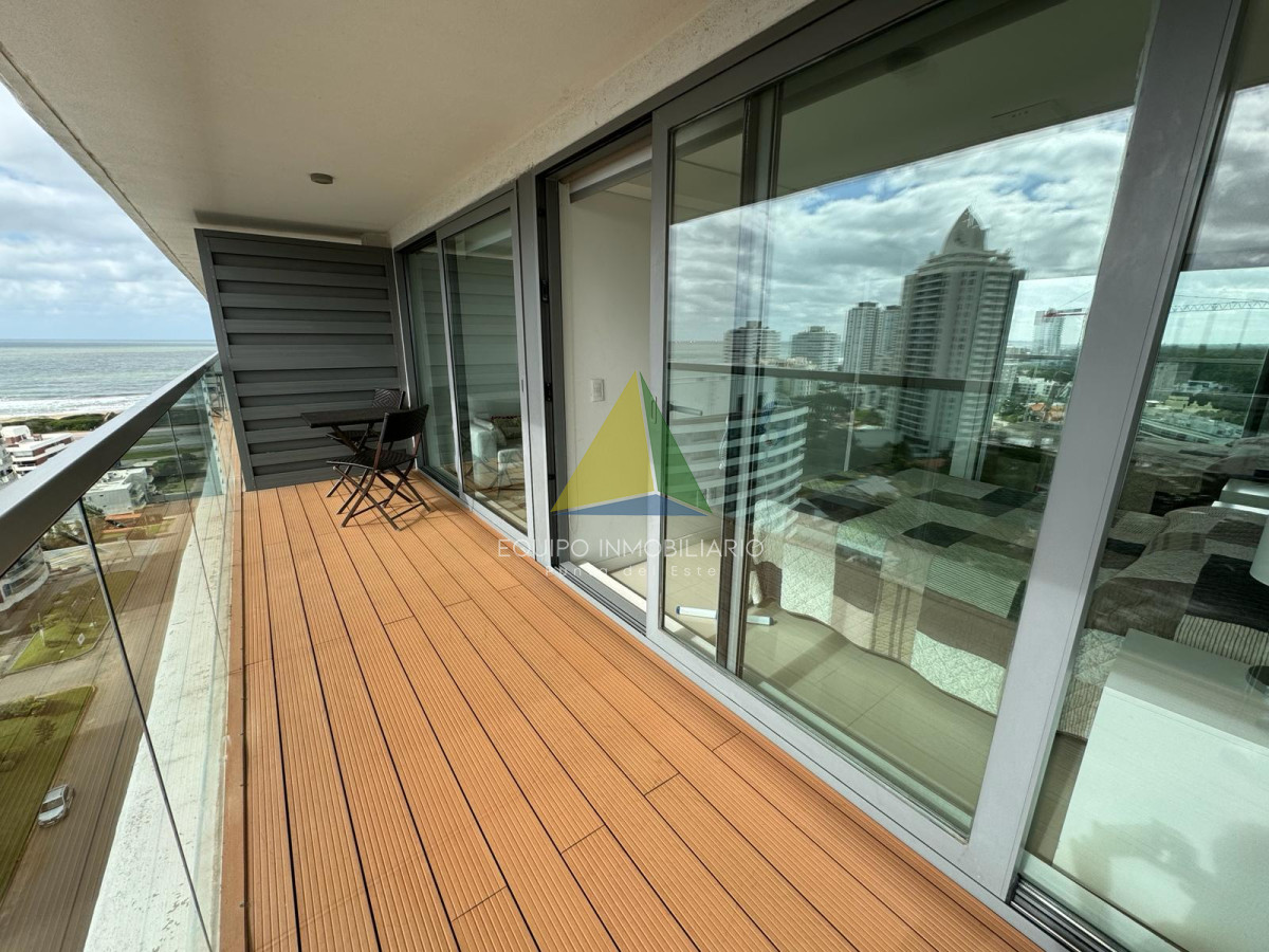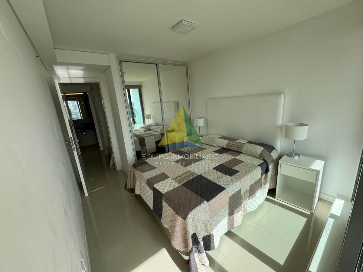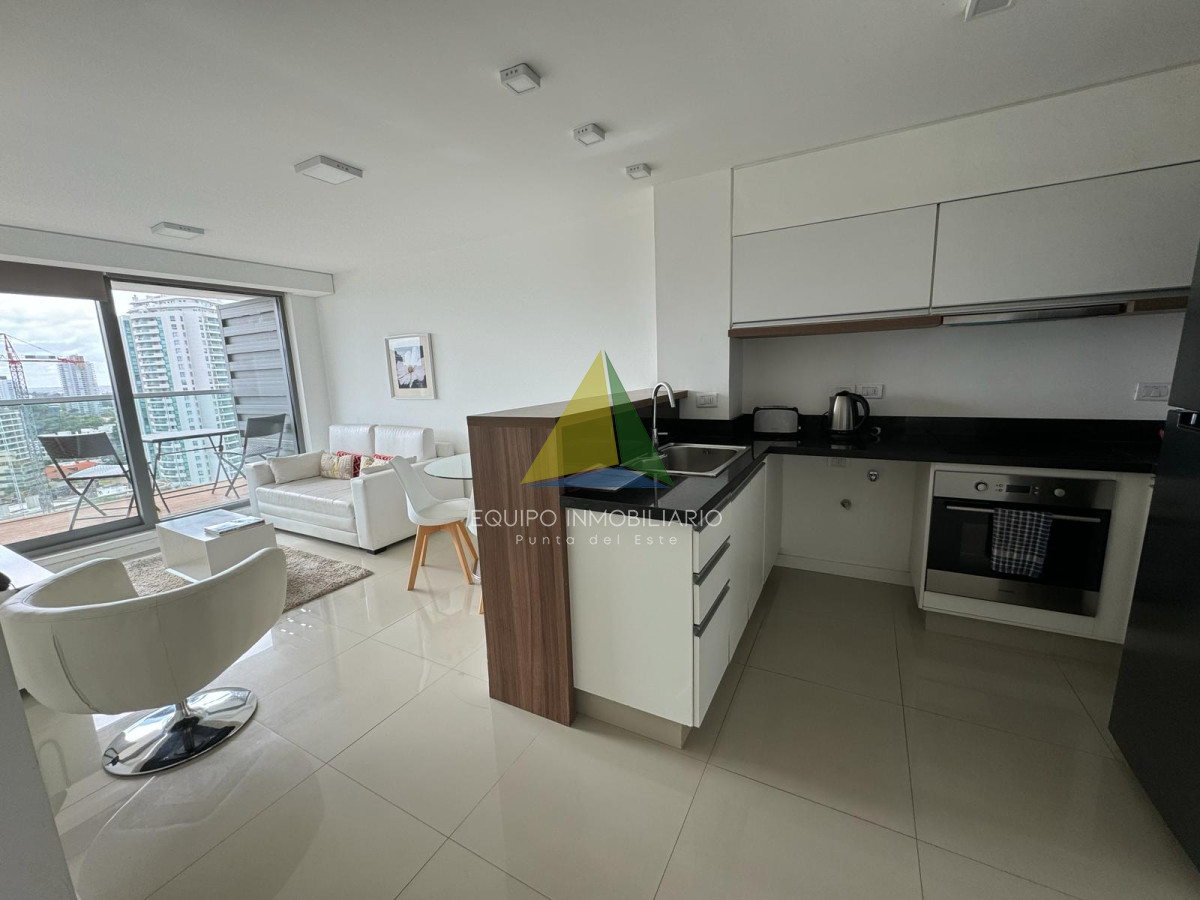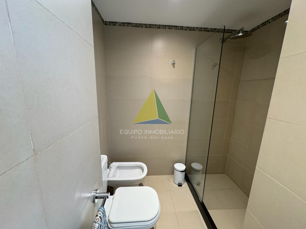 Apto 1 dormitorio en Brava - Ref : EQP5994 Apartamento un dormitorio más plus. Plus: espacio entre el dormitorio y el baño. Donde está el somier de una plaza. Baño completo con mampara y accesorios. Cocina semi integrada con barra, living - comedor grande y luminoso. La habitación posee interiores de placard completos con puertas espejadas. Dos plazas en dormitorio principal. Una plaza en plus y sillón estilo cama en living. Aire acondicionado en living. Servicio Directv pre pago, wifi. Balcón al frente, acceso desde dormitorio y living. Cuenta con deck ecológico. Excelente luz y ventilación. Cerramientos de calidad y buenas terminaciones. Con garaje y baulera A metros del Playa Brava Precio en dólares americanos, más honorarios inmobiliarios.-