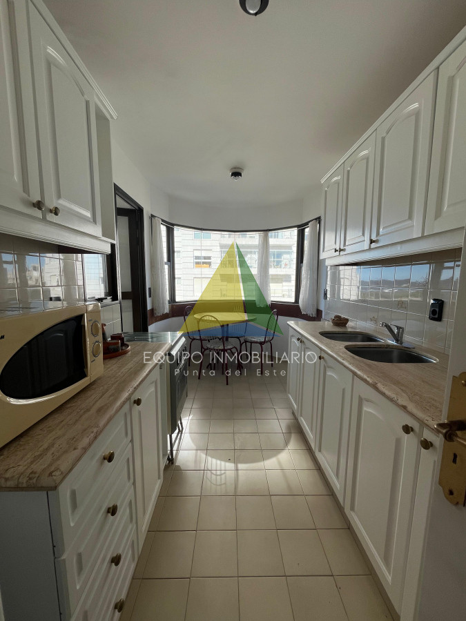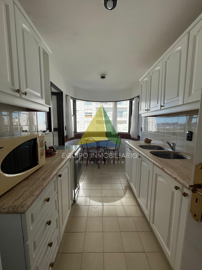 La cocina está definida, con comedor diario y lavadero independiente. El living comedor se abre a un generoso balcón al frente con impactante vista al mar, ideal para disfrutar de momentos únicos al aire libre.