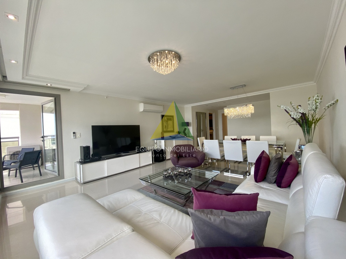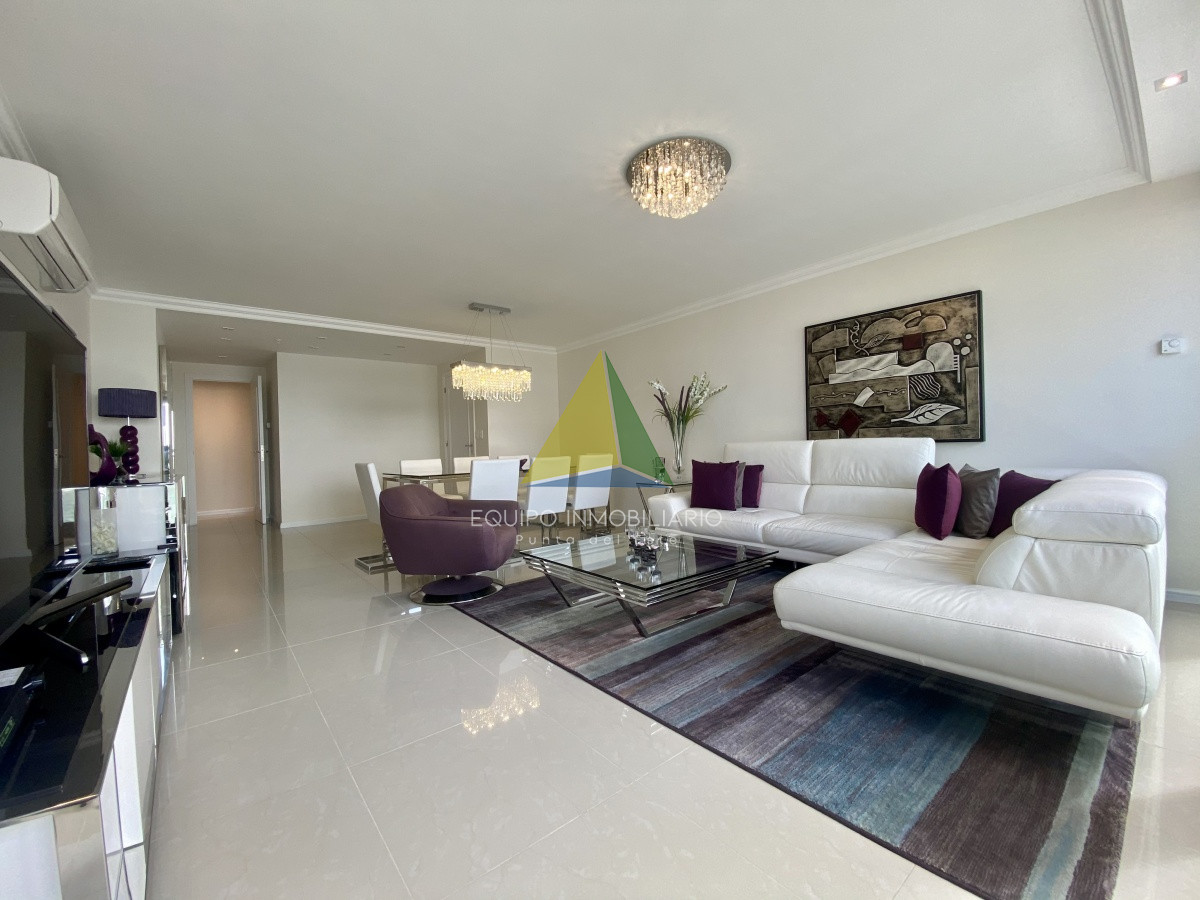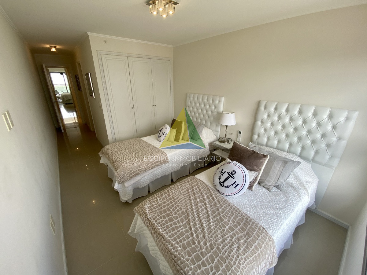 La orientación este del apartamento permite disfrutar de hermosos amaneceres y una luminosidad natural que llena cada rincón del espacio. Con una superficie total de 160 m2, esta unidad de 3 dormitorios y 3 baños cuenta con 3 suites, proporcionando alojamiento cómodo para hasta 6 personas.