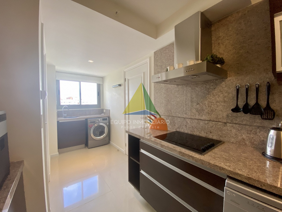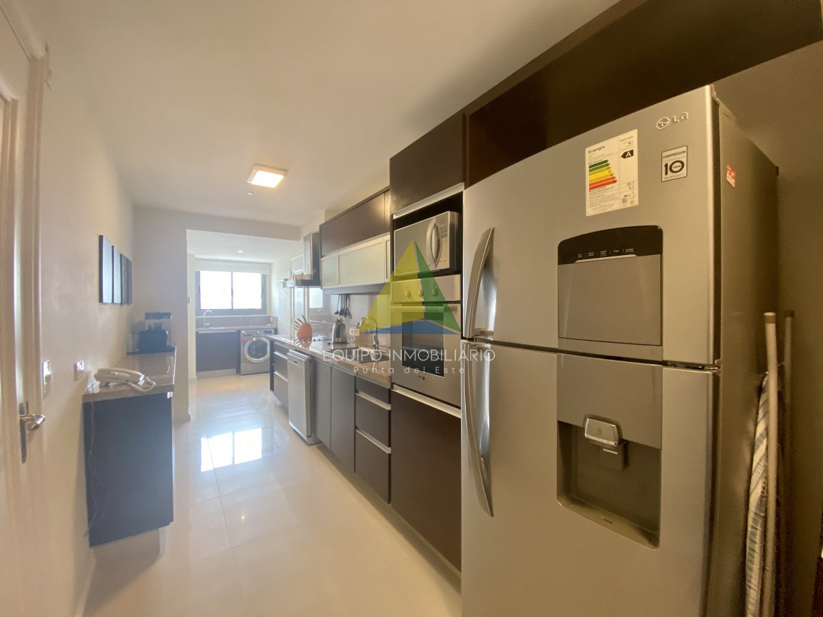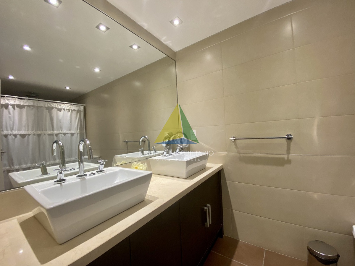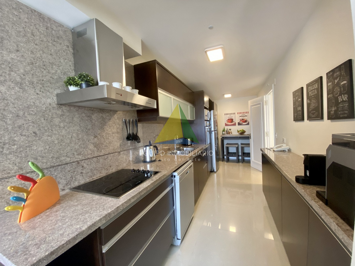 La distribución interior está diseñada para la comodidad y la funcionalidad. La cocina, completamente equipada, se integra perfectamente con el espacio de vida y el comedor, creando un ambiente acogedor y social. El equipamiento incluye anafe, microondas, lavarropas, lavavajilla, heladera con freezer, cafetera, aire acondicionado, smart TV y más.