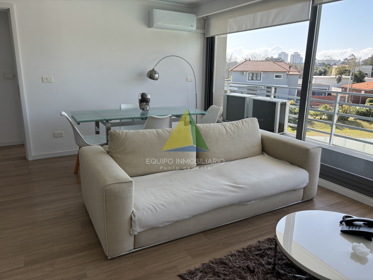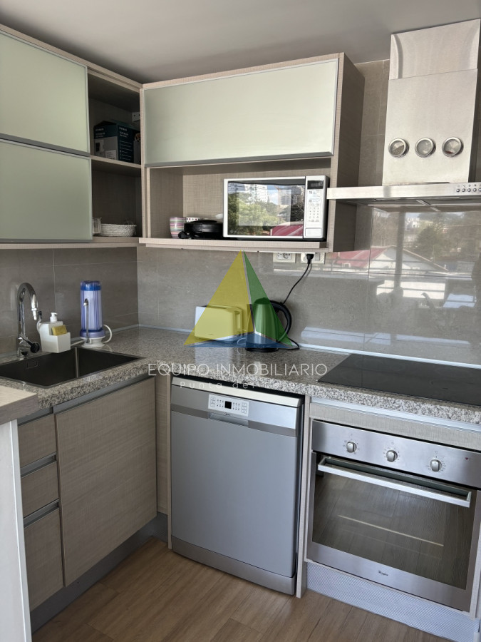 El apartamento se encuentra totalmente equipado. Living comedor vista a la piscina con salida a balcÓn.Cocina Integrada con muebles aÉreos y bajo mesada, heladera, anafe, horno, extractor, microondas, vajilla completa.
