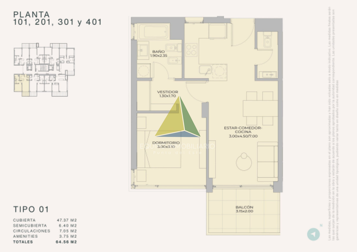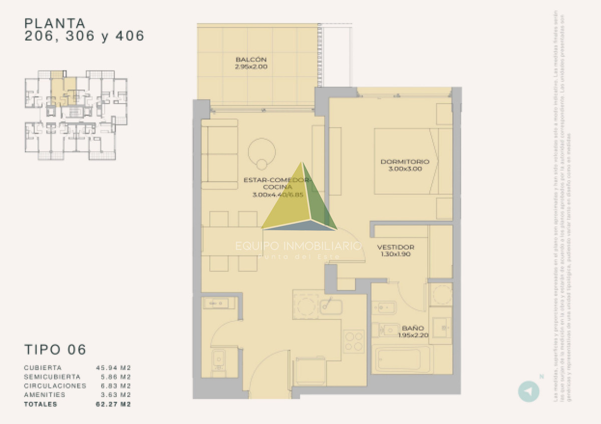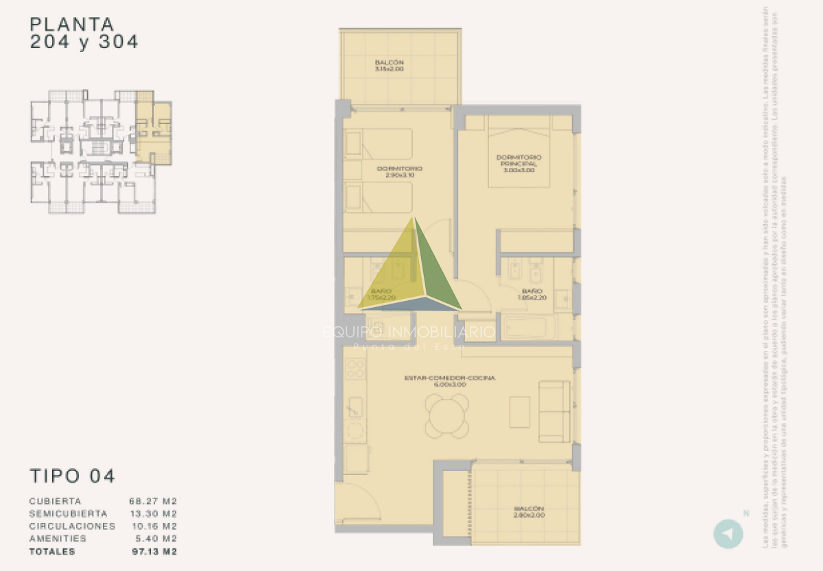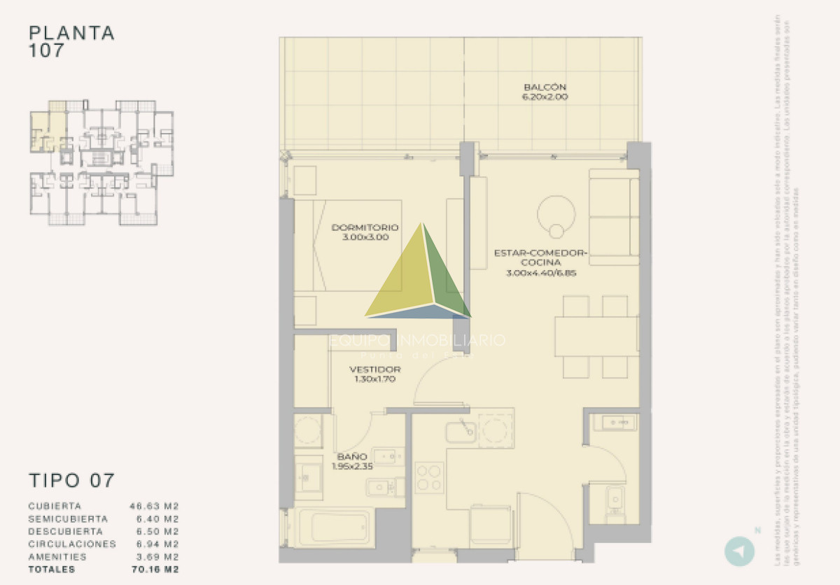 Con una superficie total de 64 m², este espacio ha sido diseñado para maximizar la luz natural y la funcionalidad. La cocina integrada se conecta armoniosamente con el living y el comedor, creando un ambiente ideal para disfrutar de momentos inolvidables con amigos y familiares. Además, contarás con el servicio de mucamas, asegurando que tu hogar siempre esté impecable.