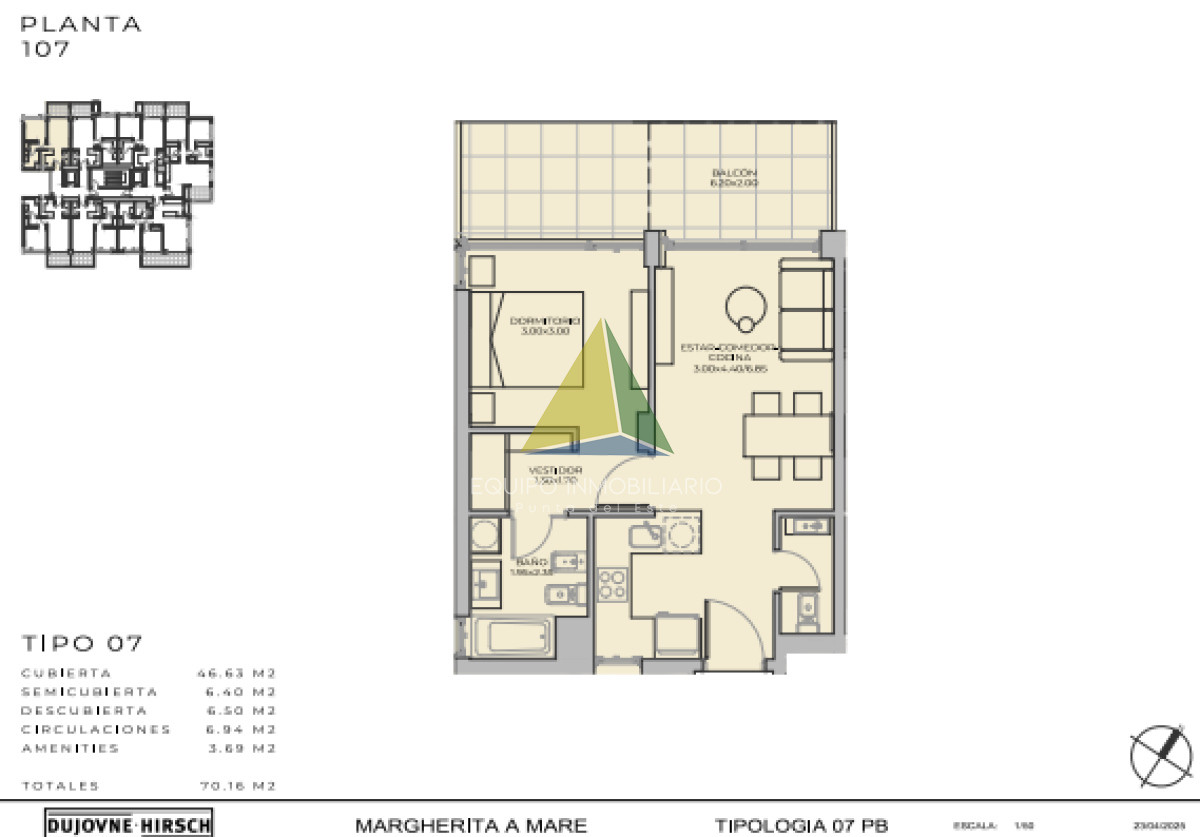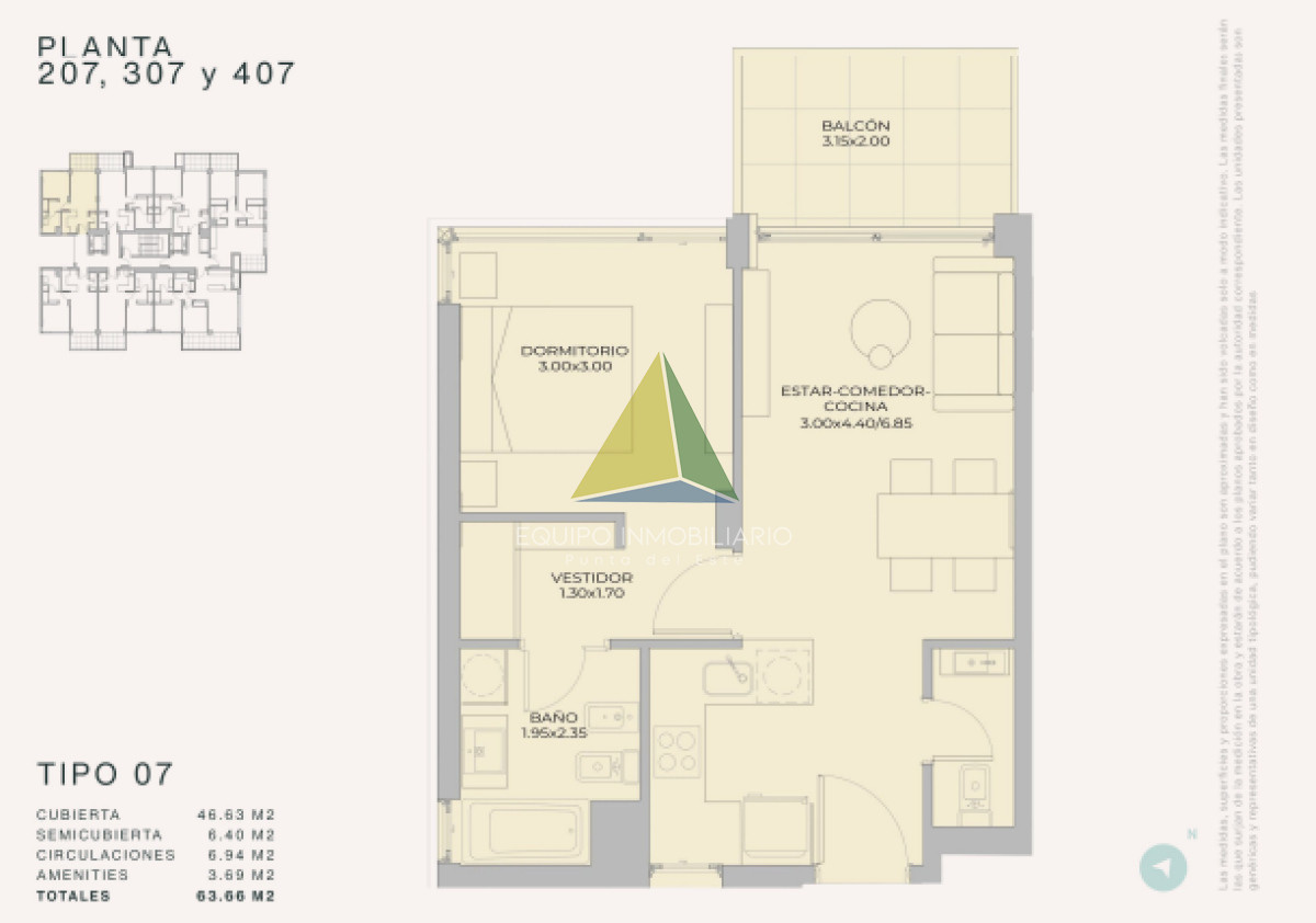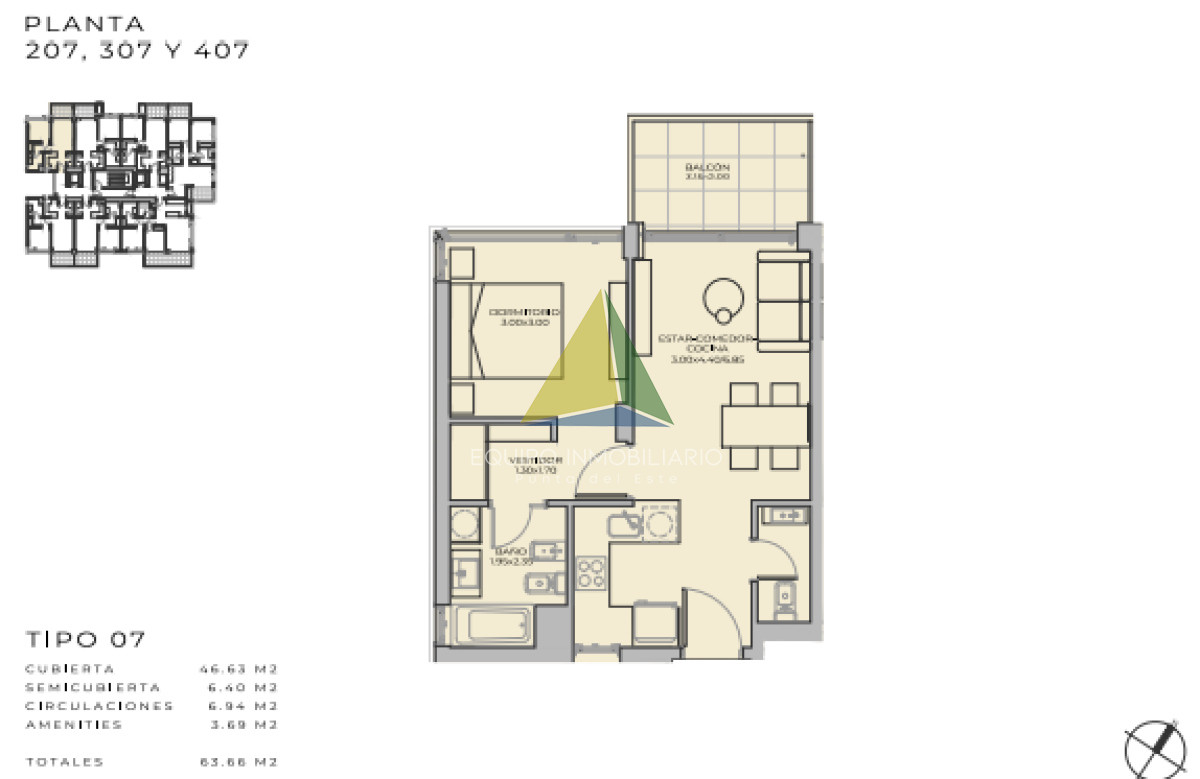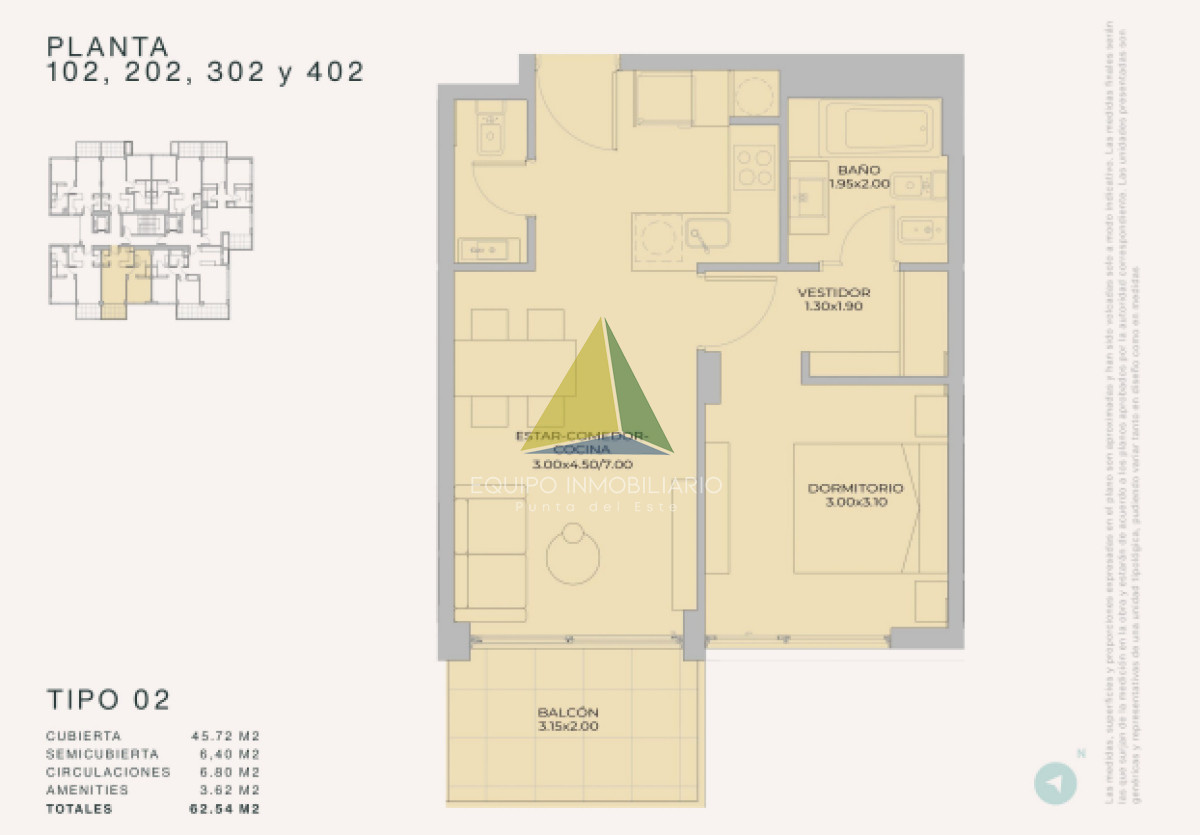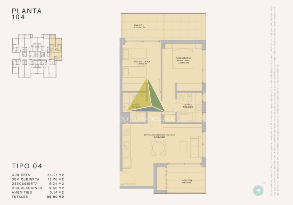 Con una superficie total de 64 m², este espacio ha sido diseñado para maximizar la luz natural y la funcionalidad. La cocina integrada se conecta armoniosamente con el living y el comedor, creando un ambiente ideal para disfrutar de momentos inolvidables con amigos y familiares. Además, contarás con el servicio de mucamas, asegurando que tu hogar siempre esté impecable.