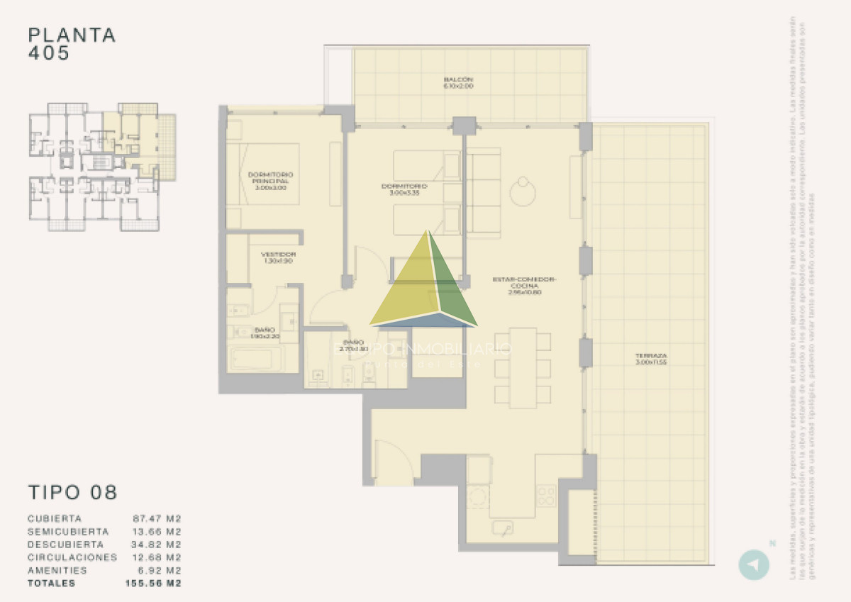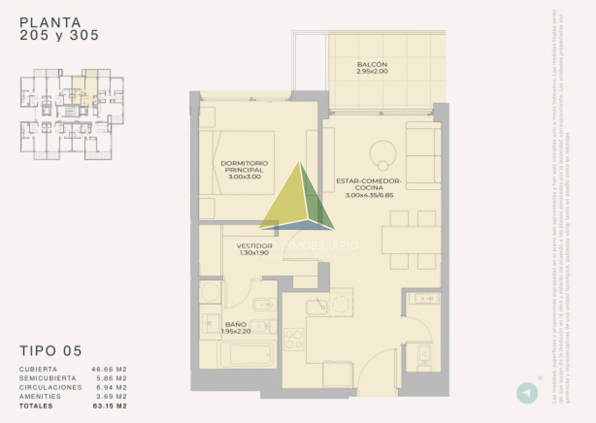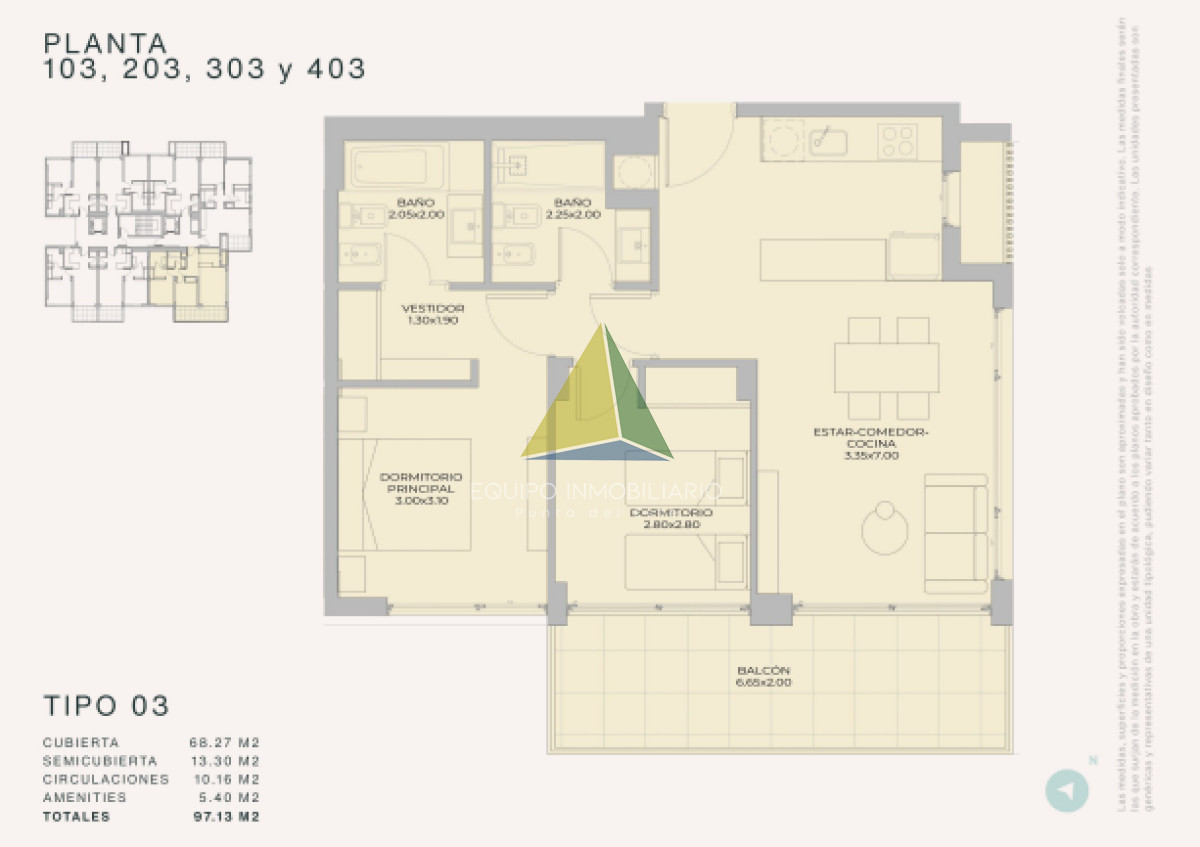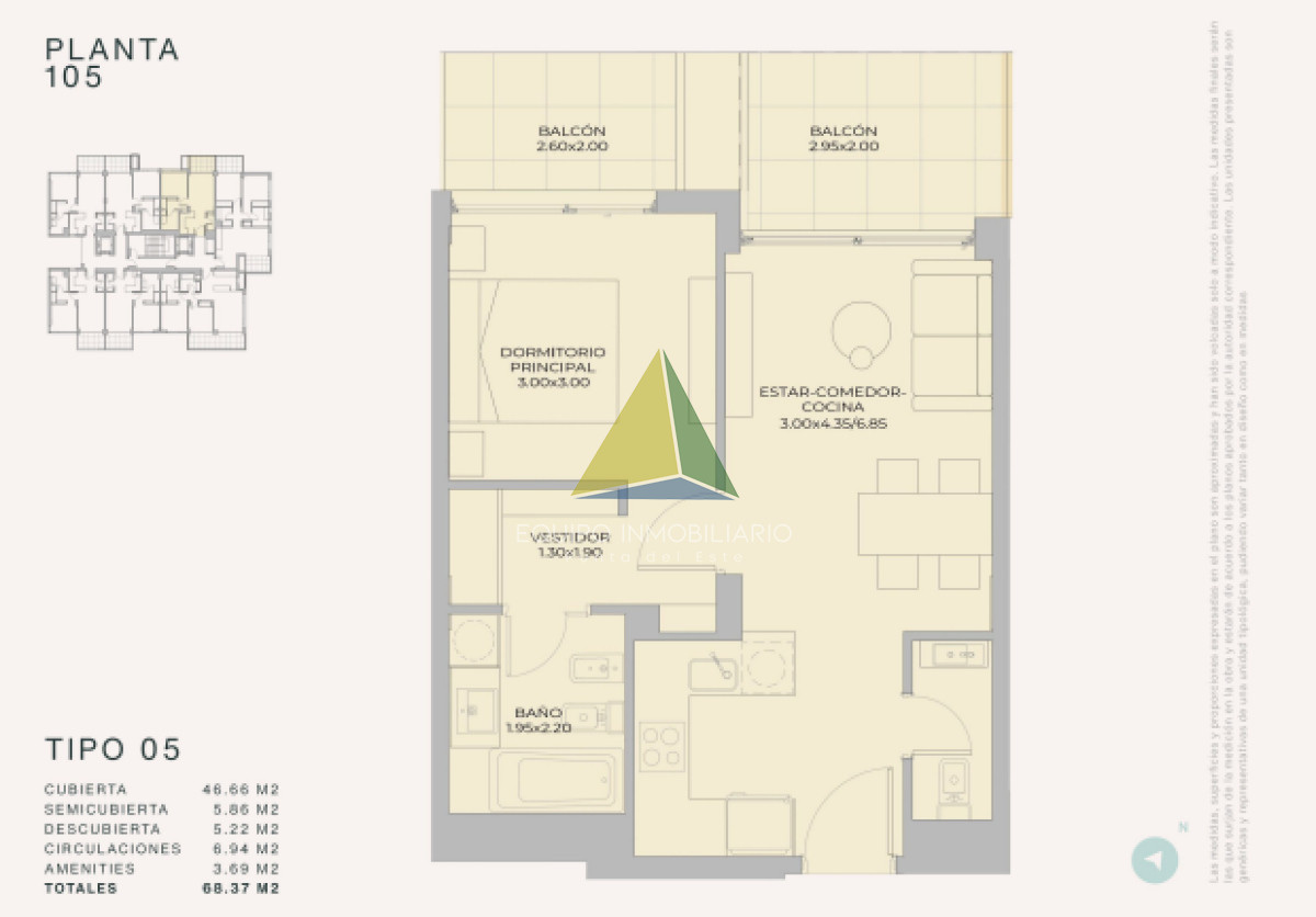 Con una superficie total de 64 m², este espacio ha sido diseñado para maximizar la luz natural y la funcionalidad. La cocina integrada se conecta armoniosamente con el living y el comedor, creando un ambiente ideal para disfrutar de momentos inolvidables con amigos y familiares. Además, contarás con el servicio de mucamas, asegurando que tu hogar siempre esté impecable.