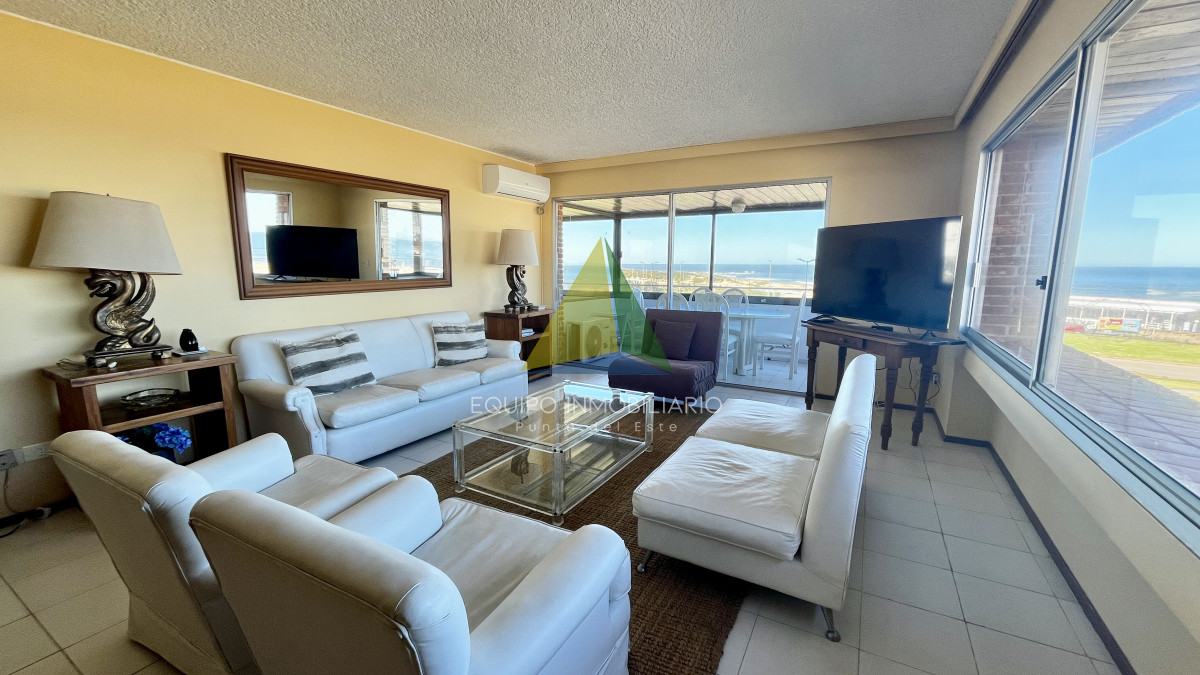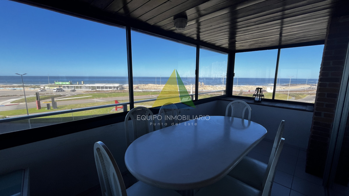 Apartamento esquinero frente al mar - Ref : EQP7701 Apartamento con una ubicación inmejorable. Ofrece vistas directas a Playa Brava y Playa Mansa, combinando luminosidad y confort en cada ambiente. La unidad cuenta con: • 3 dormitorios y 2 baños • Living comedor amplio y muy luminoso • Doble terraza cerrada con vistas panorámicas • Cocina definida • Garaje en subsuelo + baulera Un pasante único, ideal para disfrutar todo el año de la vida frente al mar, en un entorno privilegiado de Punta del Este