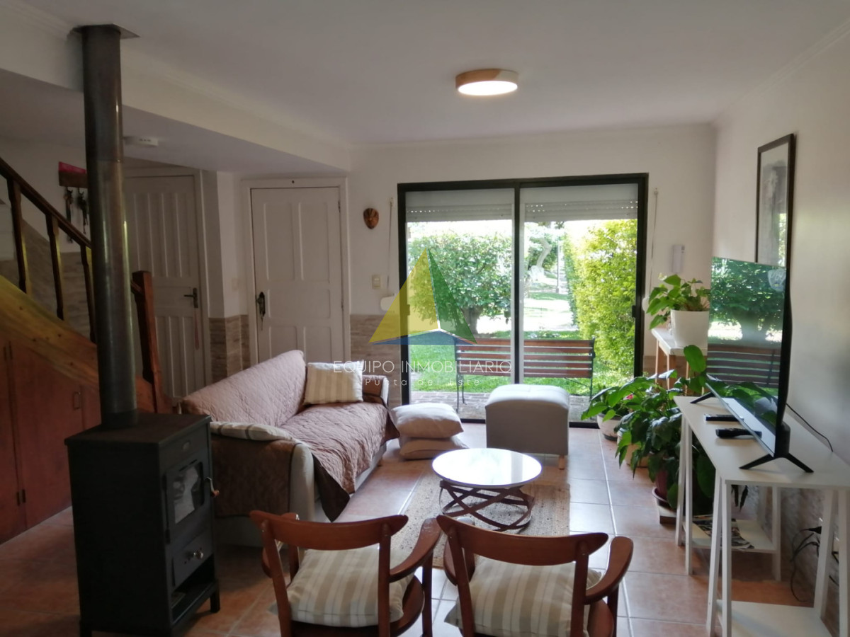 En planta baja, toilette, living-comedor con aire acondicionado y estufa de alto rendimiento, cocina americana y patio con parrillero propio. En planta alta: 2 dormitorios y 2 baños (uno en suite), con balcón al parque. Además, por escalera, hay un medio dormitorio o buhardilla con una cama y ventilador.
