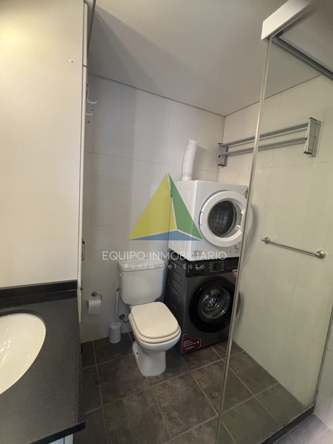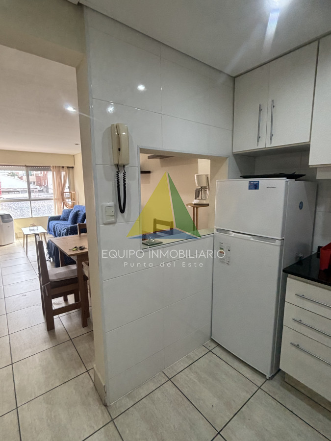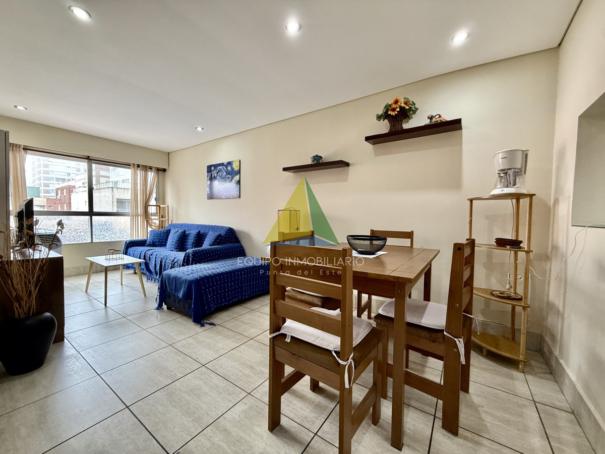 Apartamento de 1 dormitorios y medio en la peninsula. - Ref : EQP7756 Encantador apartamento de 1 dormitorio, ubicado en el corazón de la Península de Punta del Este. Con una superficie total de 58 m². La cocina integrada se abre al luminoso living-comedor, creando un ambiente ideal para compartir. Con capacidad para 3 personas, este apartamento es la opción perfecta tanto para escapadas de fin de semana como para disfrutar de la vibrante vida de la ciudad. Los gastos comunes son de $25,000 trimestrales. Cuenta con garaje y baulera en el subsuelo