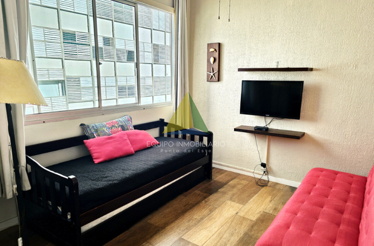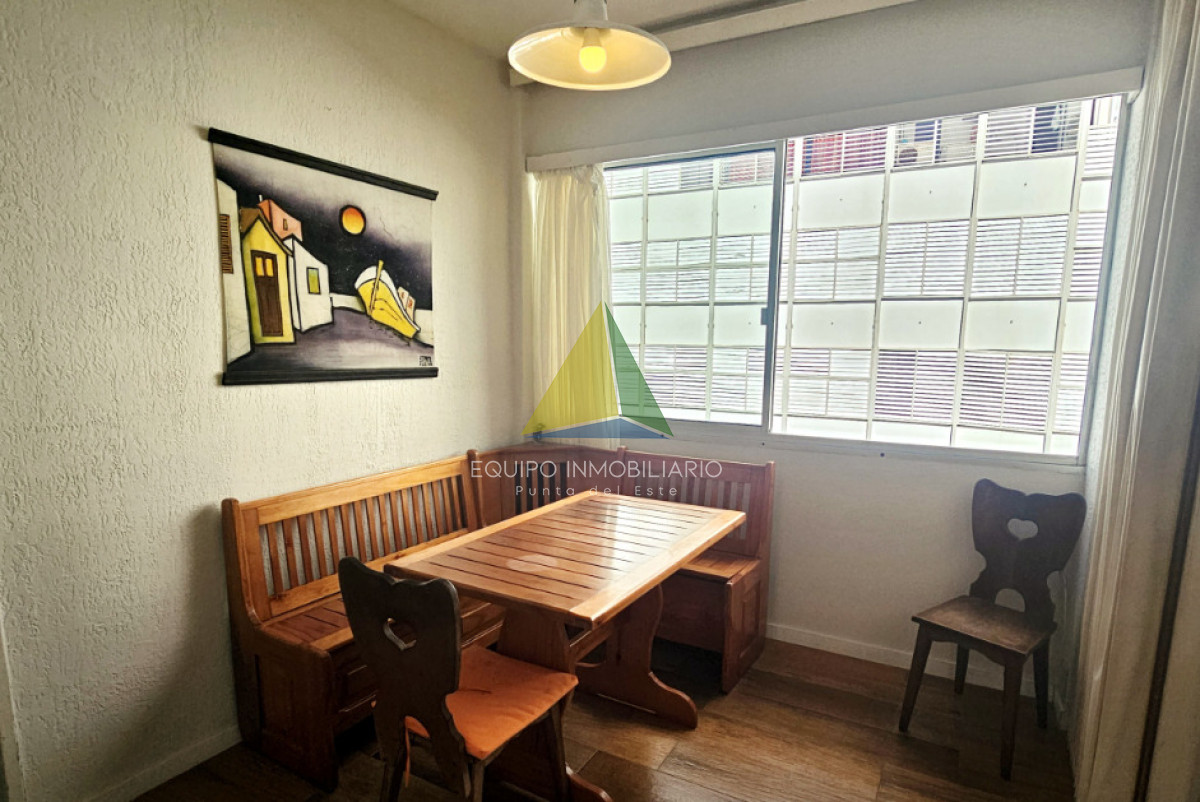 Apartamento en venta con muy buena renta, peninsula, Punta del Este - Ref : EQP7770 Este apartamento esta ubicado sobre Gorlero al lado de todos los servicios, gastos comunes bajos y muy buena renta. Cuenta con buena capacidad, 1 dormitorio y medio con 2 baños, cocina completa y lavadero instalado en el apto. Cuenta con parrillero de uso común y lugar para tender ropa. Segundo piso por escalera.