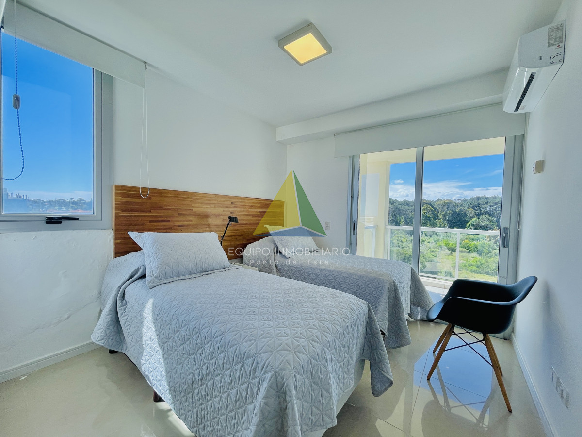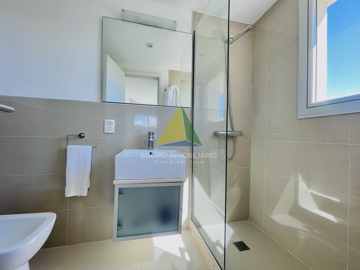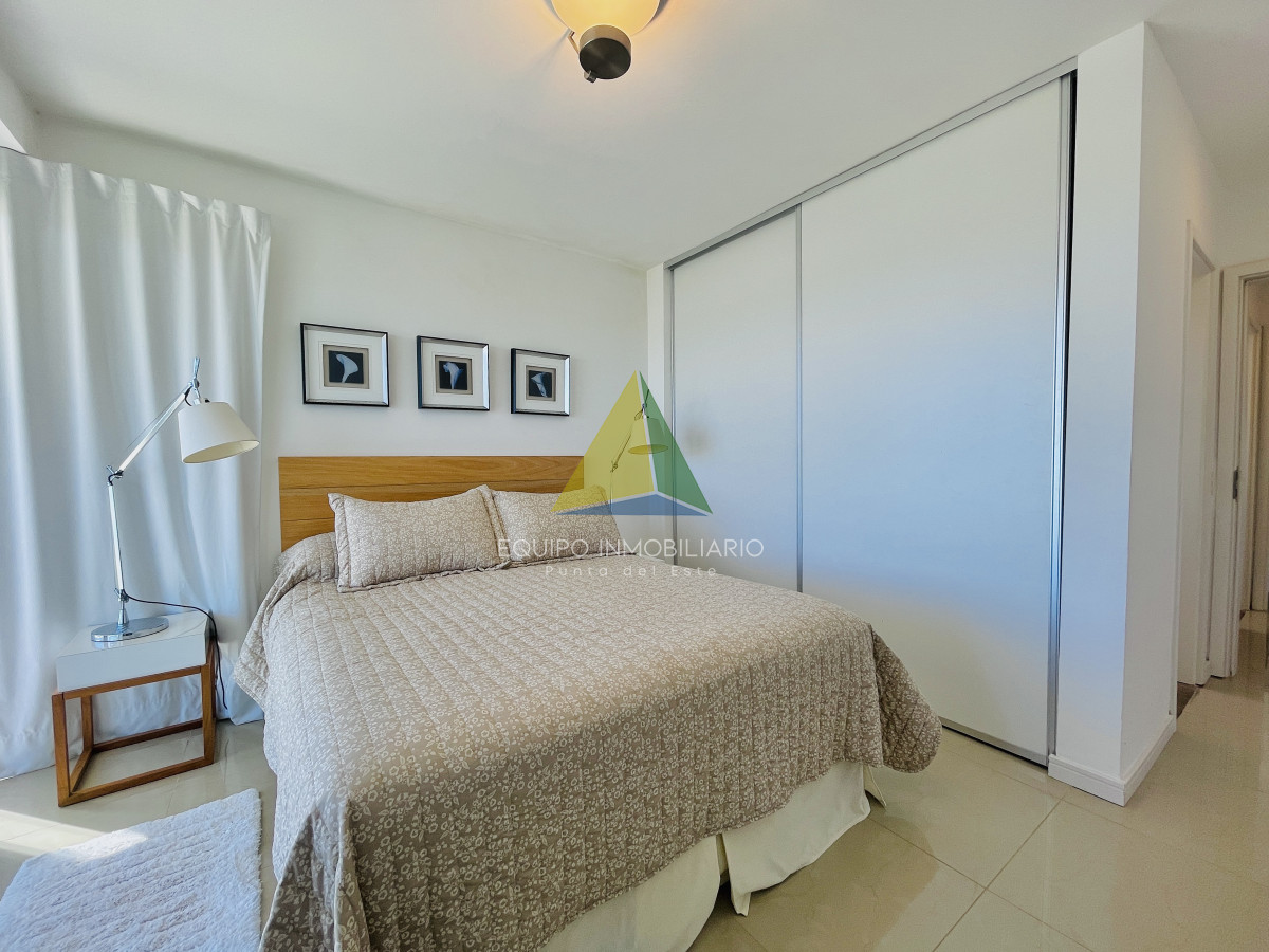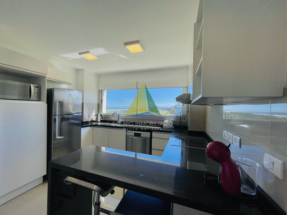 Cómoda planta, en el quinto piso, con una hermosa vista al amanecer sobre el mar. Unidad de tres cómodos dormitorios, todos con baños en suite y salida a balcón, más baño social. Luminoso living comedor al frente con terraza con vista al mar. Gran cocina definida, con área de lavadero aparte. Aire acondicionado en todos los ambientes.