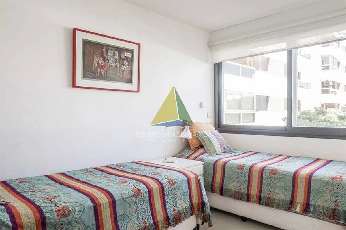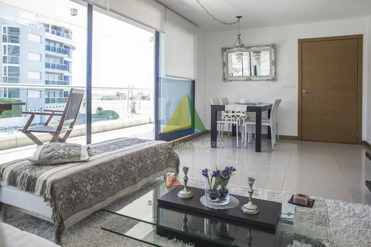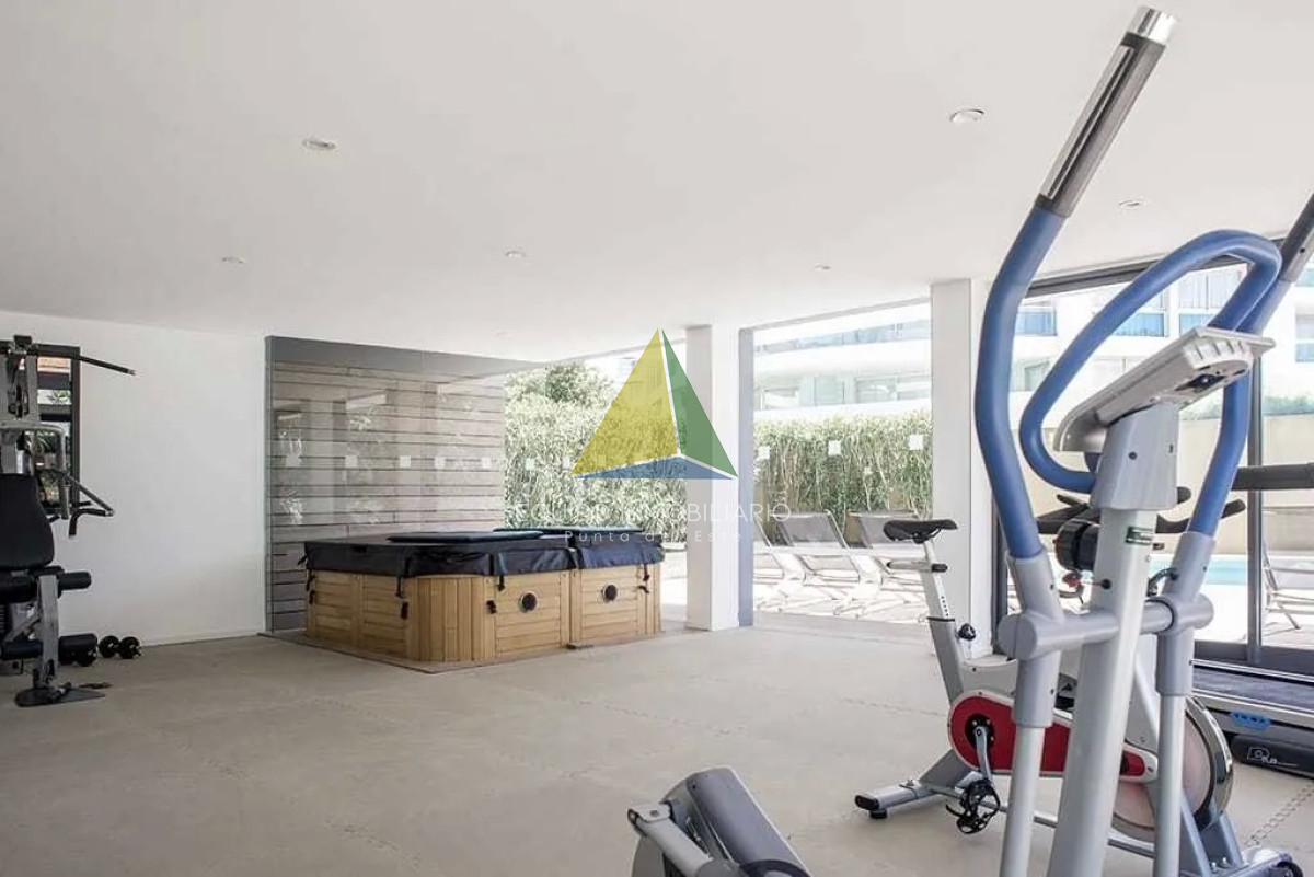 Bravissima 6 - Playa Brava Punta del Este - Ref : EQP8024 Edificio super exclusivo tiene 16 unidades todas con vista a la bahia. Departamento lateral con terraza en L con parrillero propio. Tiene 58m2 más terraza. Comodidades 2 dormitorios, 2 baños (uno completo y otro toilete), cocina semi integrada, living comedor, garage en subsuelo con baulera.