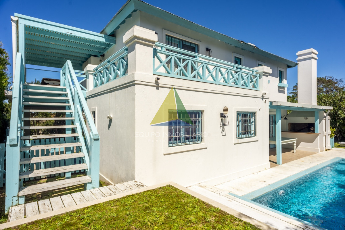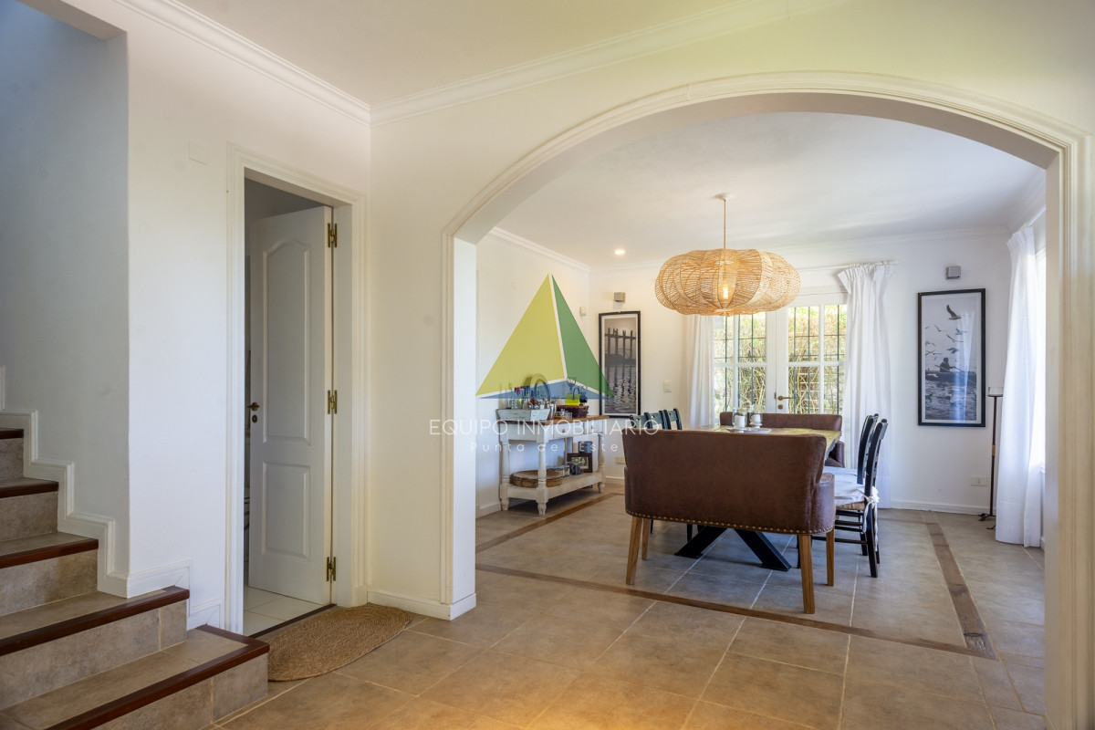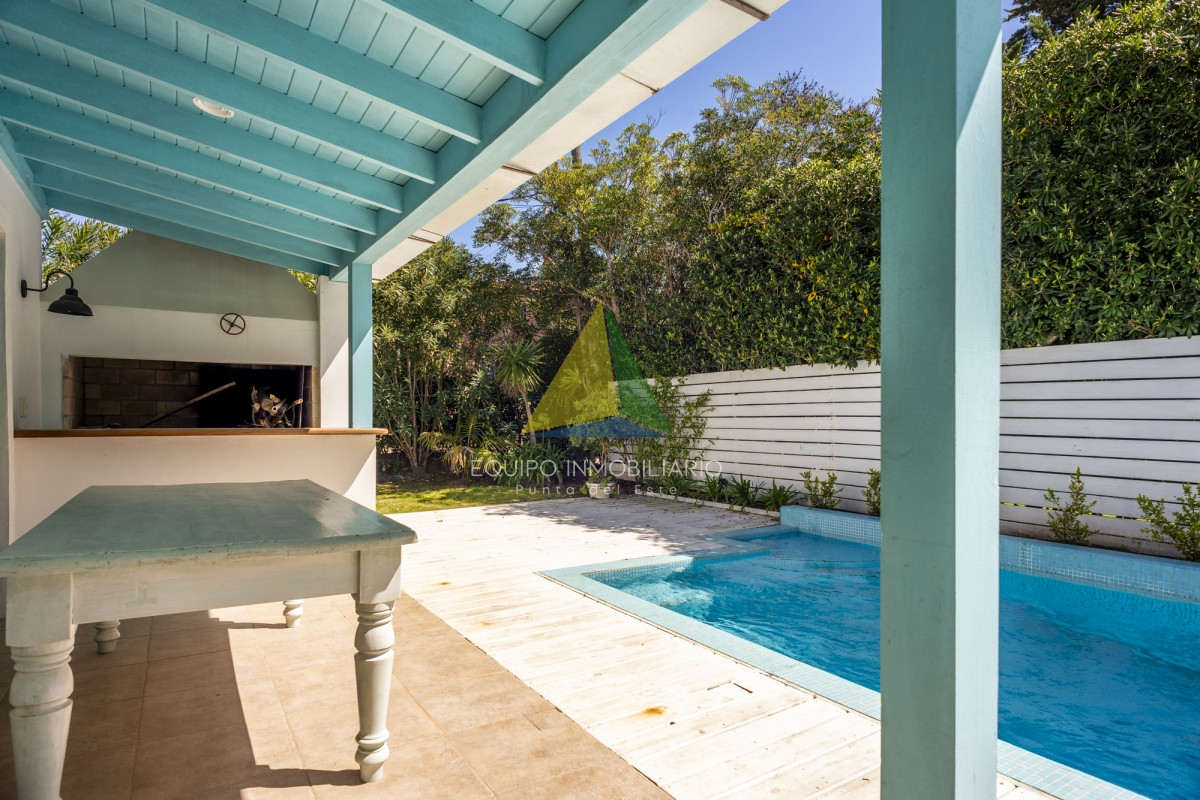 CASA, 3 DORMITORIOS, 2 BAÑOS, MONTOYA, PUNTA DEL ESTE, VENTA Y ALQUILER - Ref : EQP3844 Montoya a una cuadra de la playa. Planta baja: Living-comedor, toilette, cocina. Dep. de servicio. Salida directa al parrillero, jardín y piscina. Planta alta: Dormitorio principal en suite y con vestidor. Dos dormitorios que comparten baño con jacuzzi. Terraza techada y semicerrada. Lavadero. Caldera a gas, losa radiante sectorizada, AA,