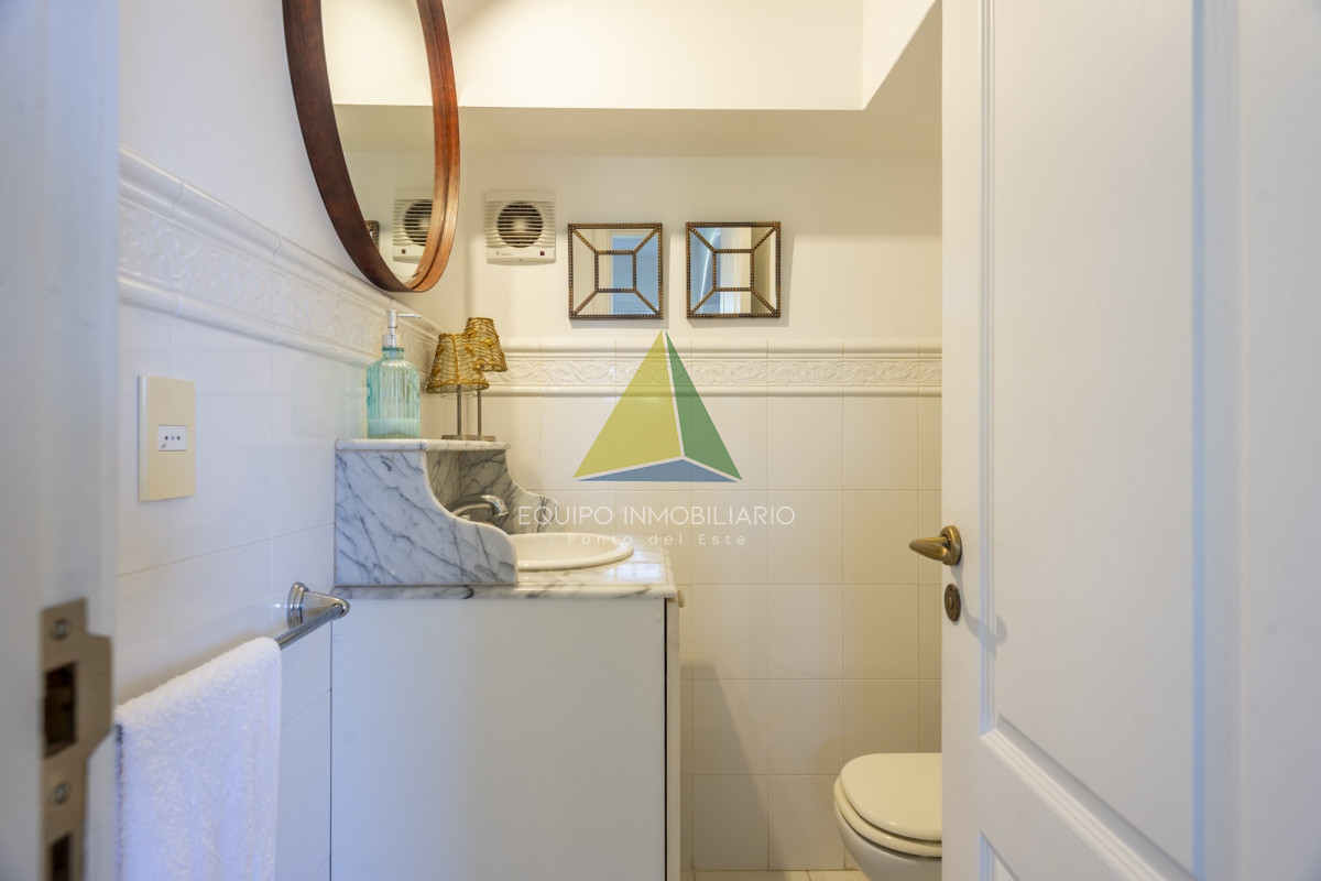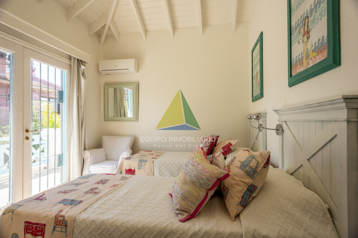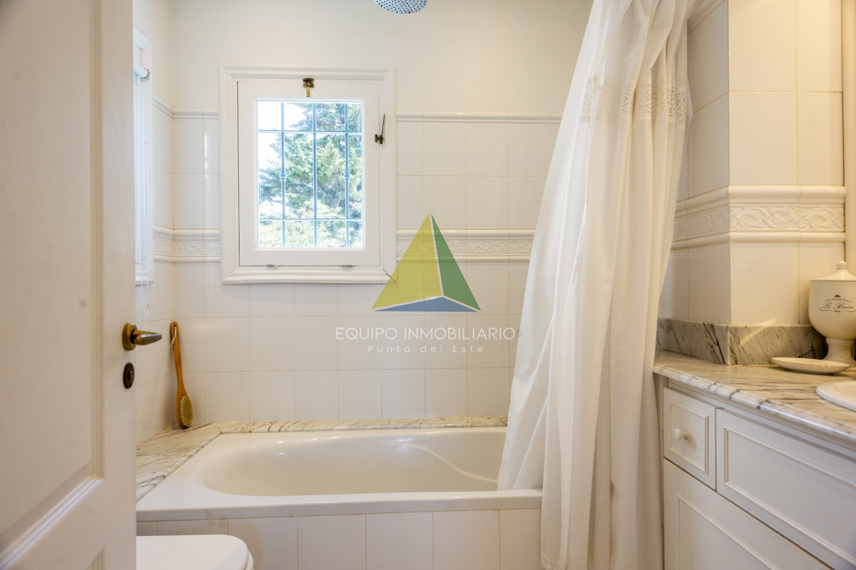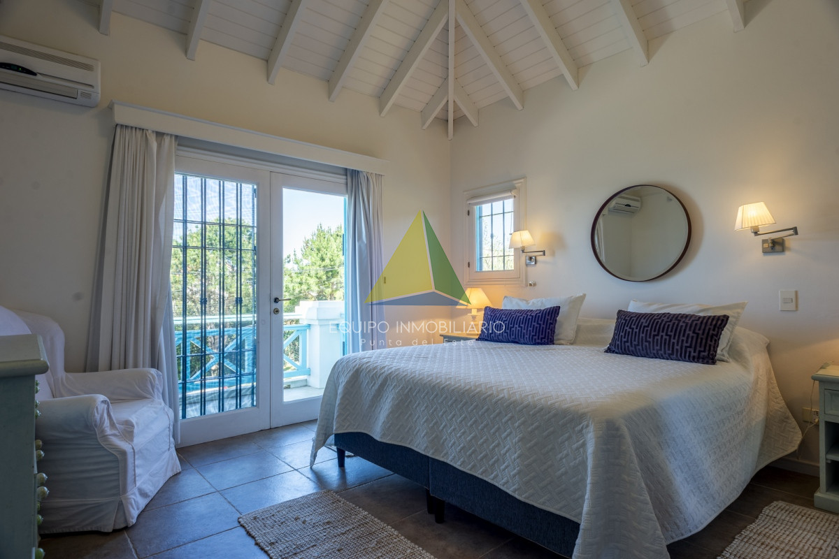 CASA, 3 DORMITORIOS, 2 BAÑOS, MONTOYA, PUNTA DEL ESTE, VENTA Y ALQUILER - Ref : EQP3844 Montoya a una cuadra de la playa. Planta baja: Living-comedor, toilette, cocina. Dep. de servicio. Salida directa al parrillero, jardín y piscina. Planta alta: Dormitorio principal en suite y con vestidor. Dos dormitorios que comparten baño con jacuzzi. Terraza techada y semicerrada. Lavadero. Caldera a gas, losa radiante sectorizada, AA,