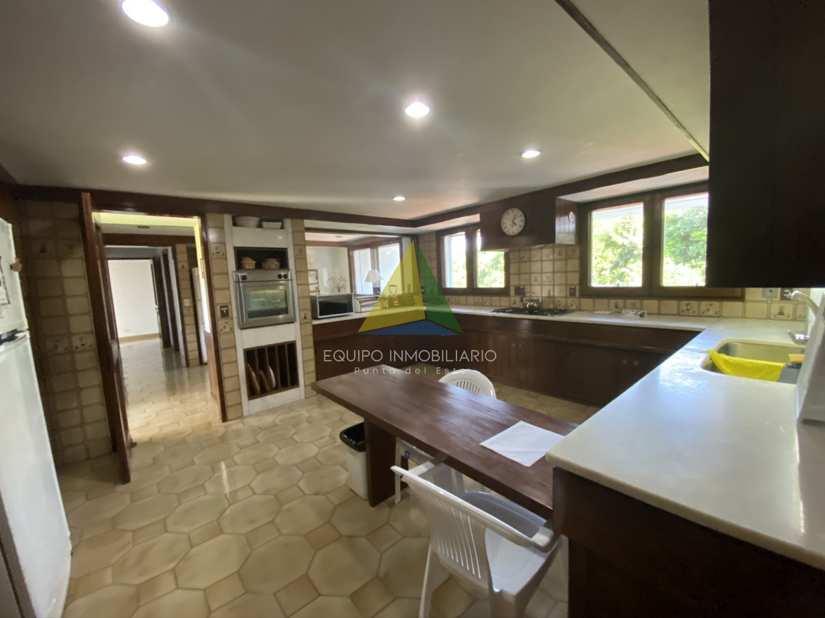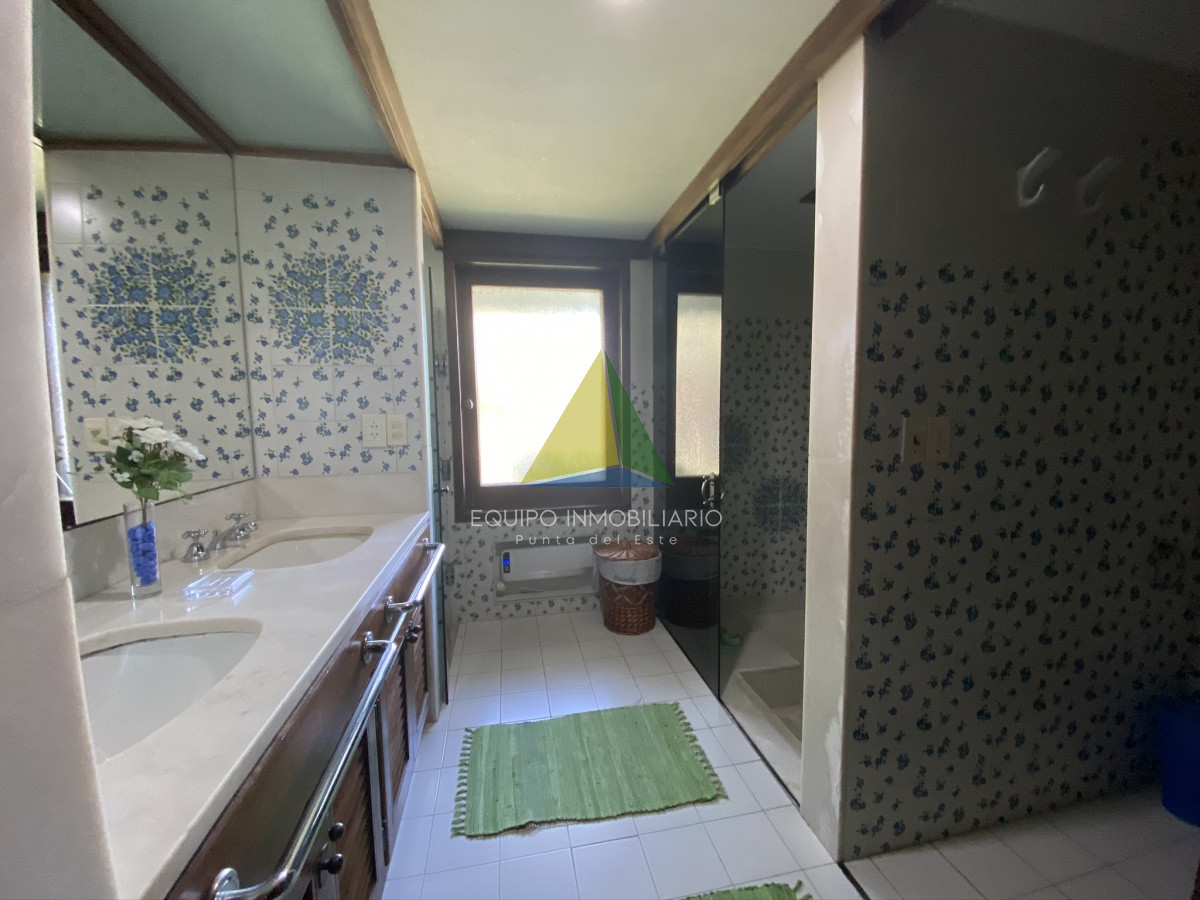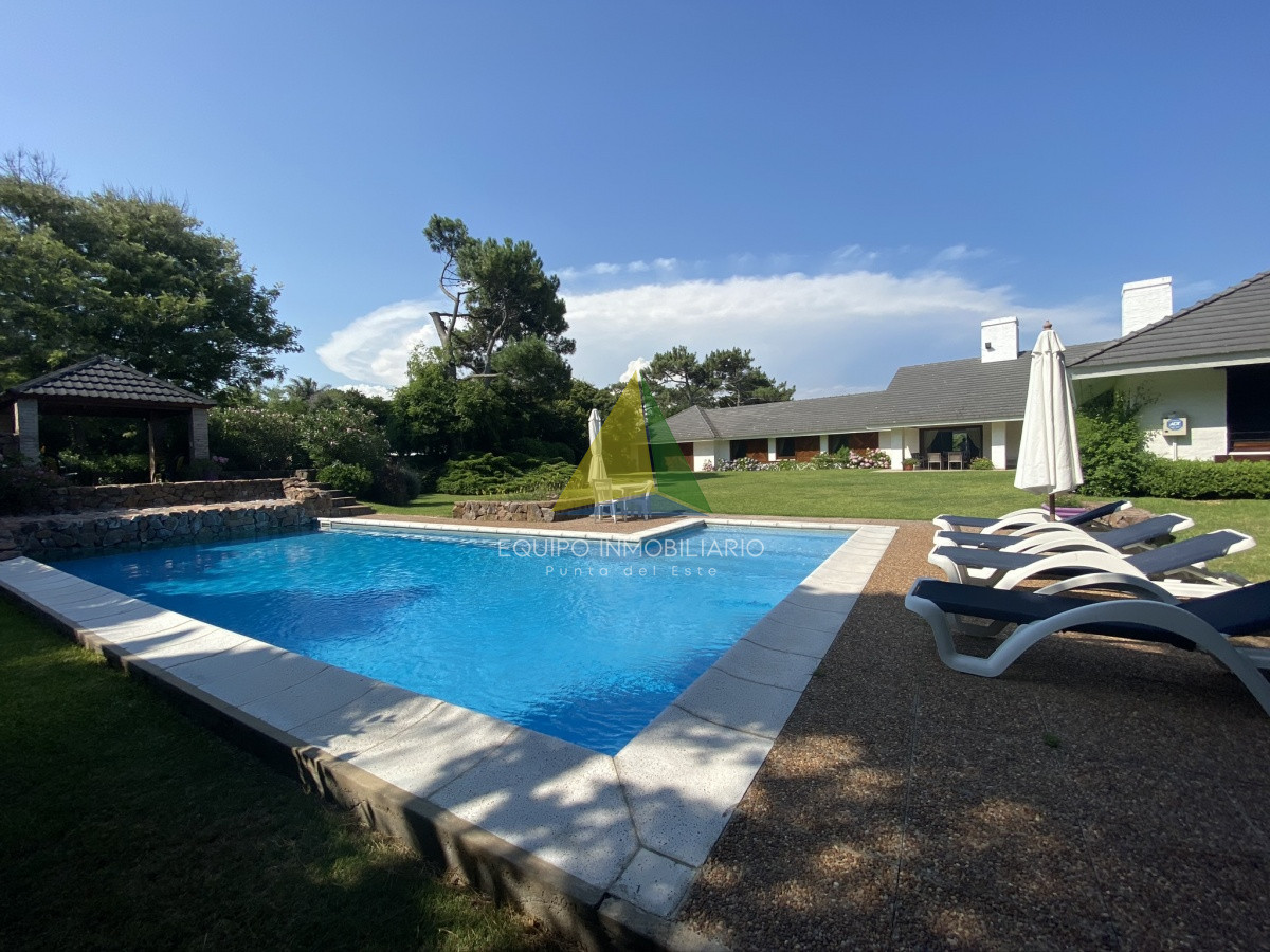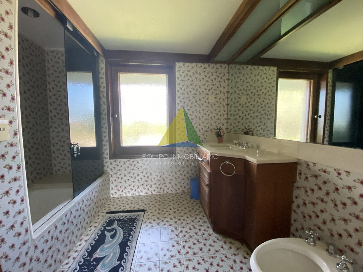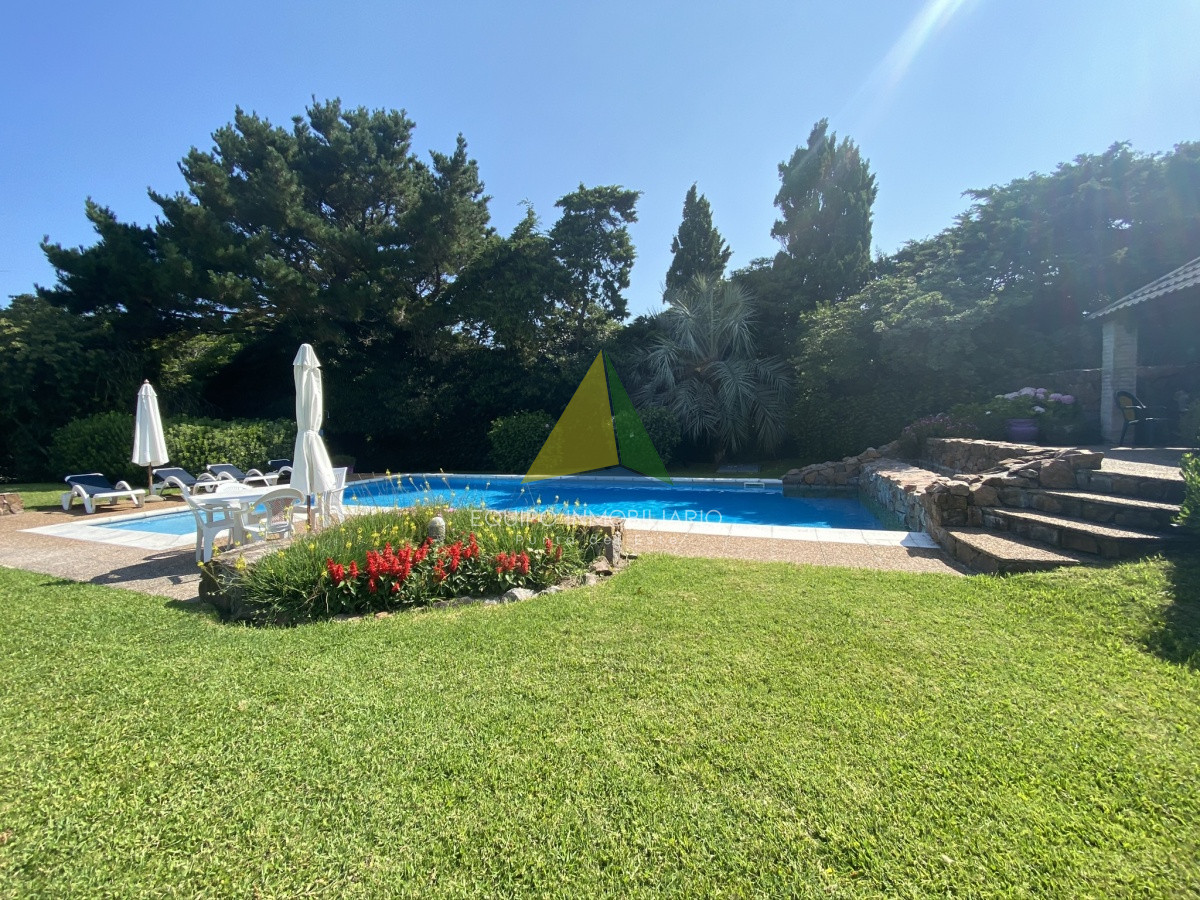Casa principal con 3 dormitorios, 2 baños, 1 en suite, 1 toilette, y dependencia de servicio doble con baño muy buena (puede funcionar como cuarto y quinto dormitorio). Amplio living con dos zonas de estar, estufa a leña, vista al mar, comedor independiente. Muy buena cocina,con office , lavadero,garage y estacionamiento. Torreta independiente en tres niveles con 2 dormitorios y 2 baños, 2 en suite, estar con estufa a leña, cocina, vista al mar. Gran jardín completamente cercado con piscina con cascada de agua y glorieta. Terraza al frente con vista al mar. Parrillero techado. Garage para dos autos, con depósito y baño, estacionamiento.