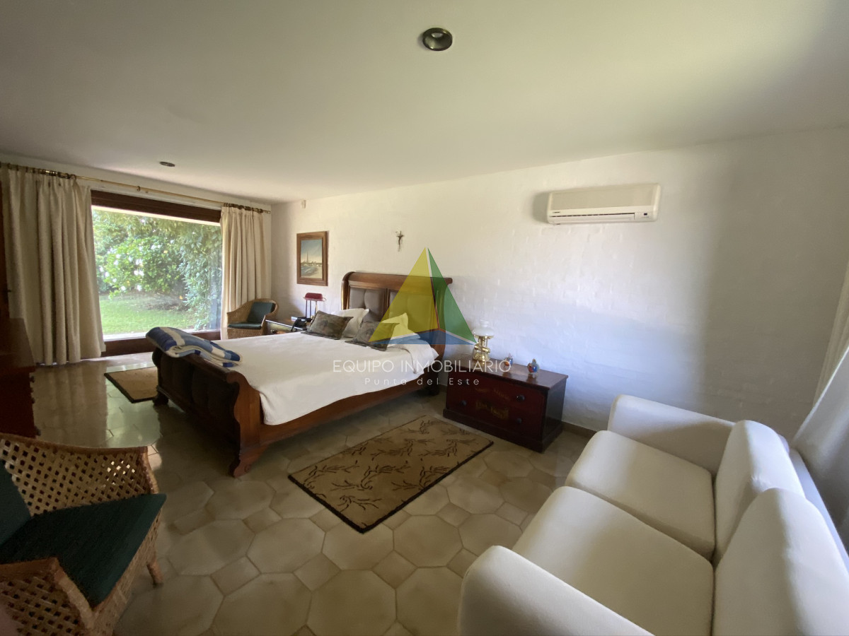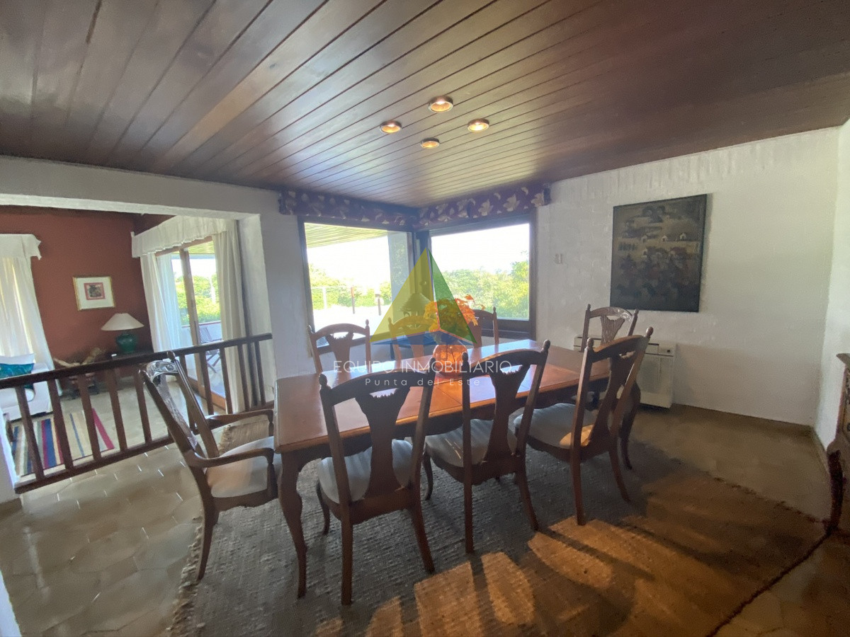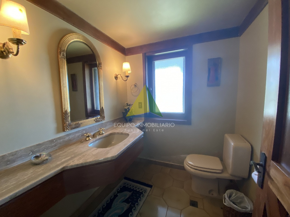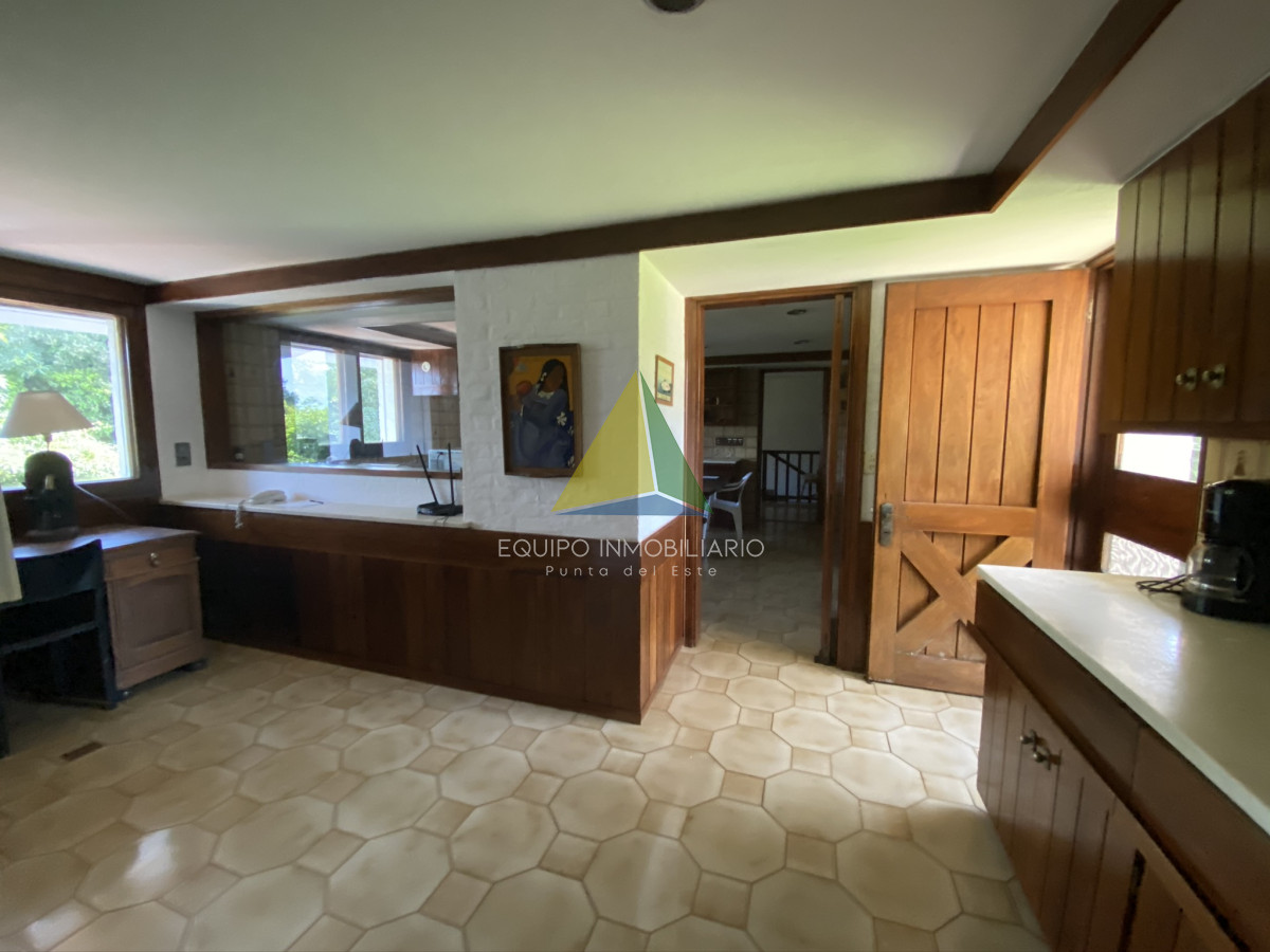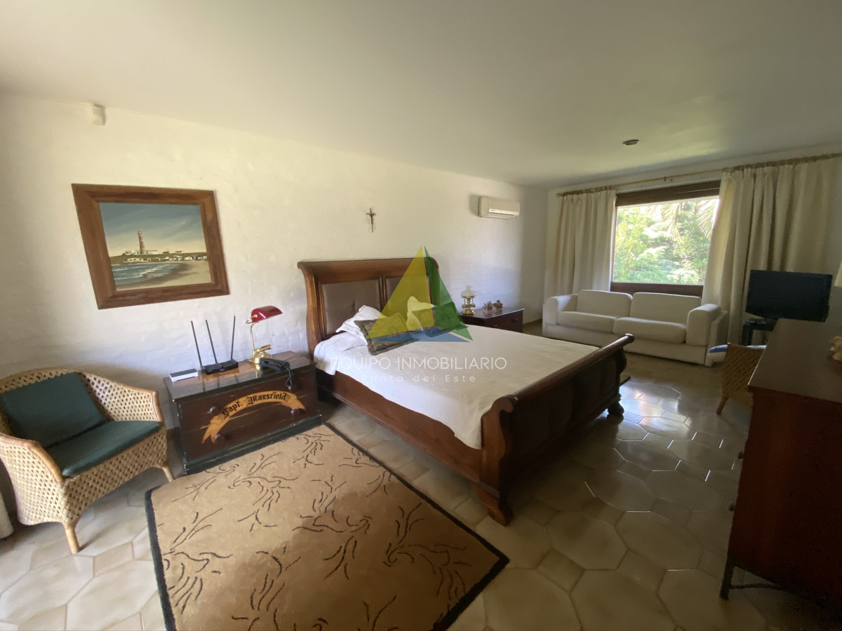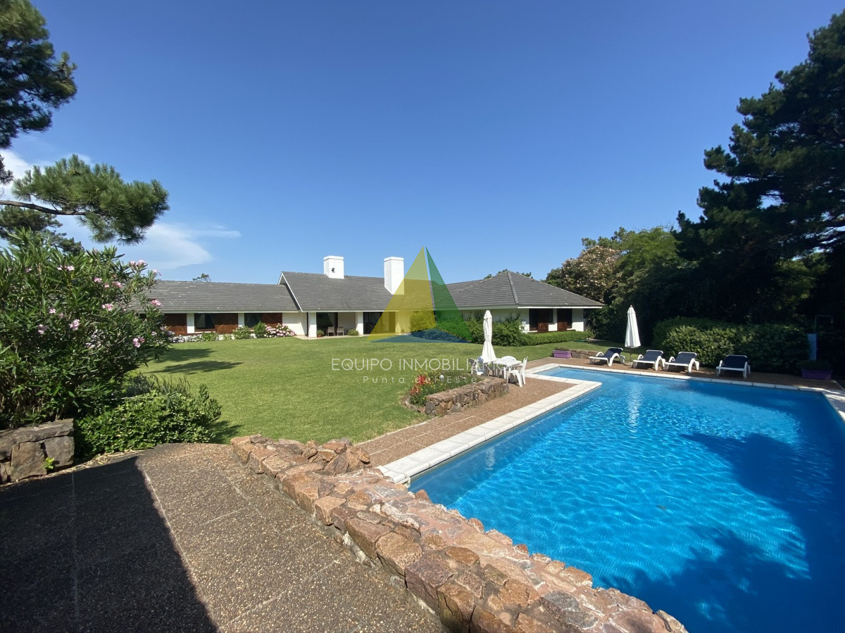 Casa principal con 3 dormitorios, 2 baños, 1 en suite, 1 toilette, y dependencia de servicio doble con baño muy buena (puede funcionar como cuarto y quinto dormitorio). Amplio living con dos zonas de estar, estufa a leña, vista al mar, comedor independiente. Muy buena cocina,con office , lavadero,garage y estacionamiento. Torreta independiente en tres niveles con 2 dormitorios y 2 baños, 2 en suite, estar con estufa a leña, cocina, vista al mar. Gran jardín completamente cercado con piscina con cascada de agua y glorieta. Terraza al frente con vista al mar. Parrillero techado. Garage para dos autos, con depósito y baño, estacionamiento.