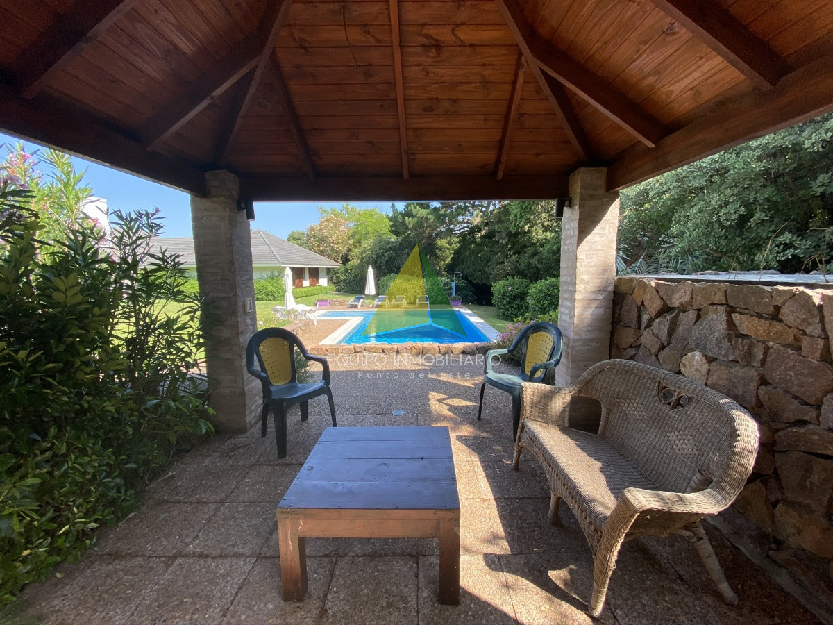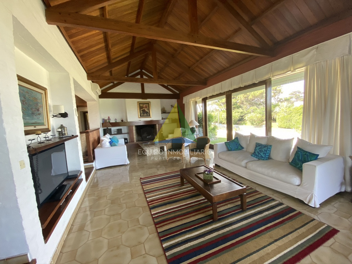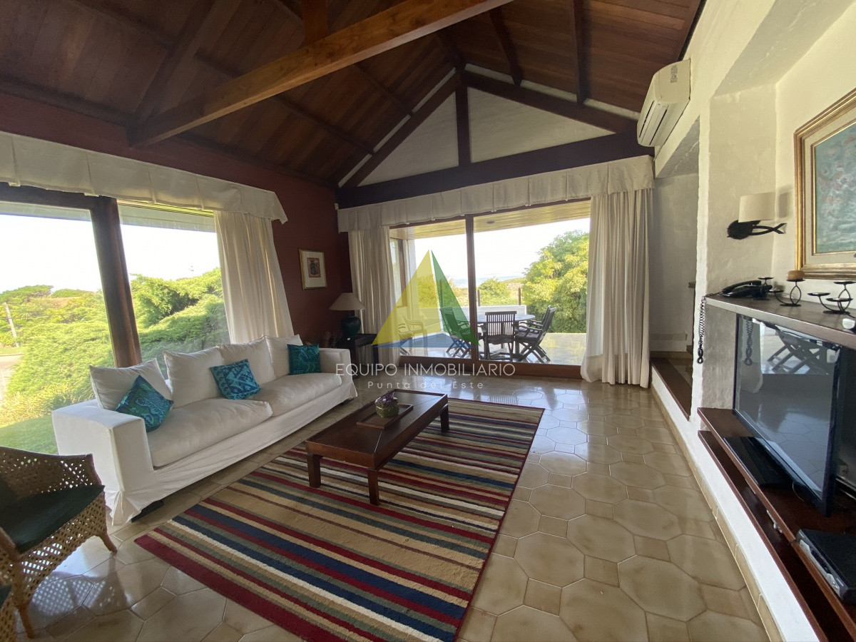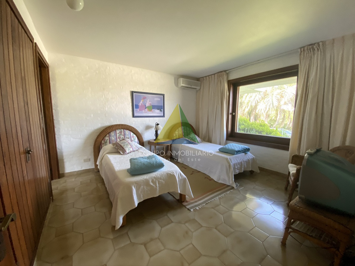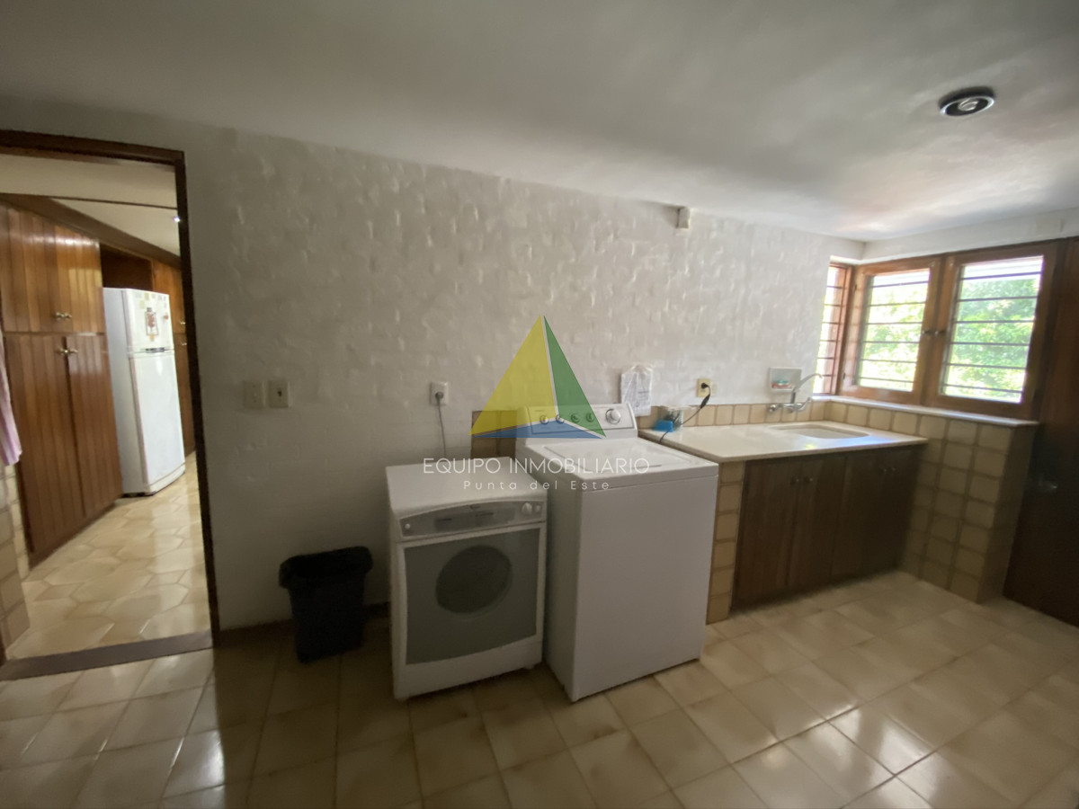 Casa principal con 3 dormitorios, 2 baños, 1 en suite, 1 toilette, y dependencia de servicio doble con baño muy buena (puede funcionar como cuarto y quinto dormitorio). Amplio living con dos zonas de estar, estufa a leña, vista al mar, comedor independiente. Muy buena cocina,con office , lavadero,garage y estacionamiento. Torreta independiente en tres niveles con 2 dormitorios y 2 baños, 2 en suite, estar con estufa a leña, cocina, vista al mar. Gran jardín completamente cercado con piscina con cascada de agua y glorieta. Terraza al frente con vista al mar. Parrillero techado. Garage para dos autos, con depósito y baño, estacionamiento.