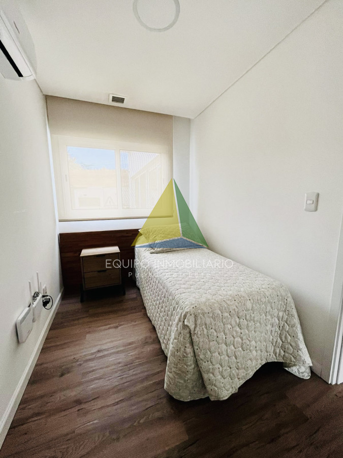 Amplio living comedor con estufa a leña de alto rendimiento y grandes ventanales que permiten el ingreso de luz natural todo el día. Cocina integrada, bien equipada, más área de lavadero y despensa. Cuenta con aire acondicionado en todos los ambientes.