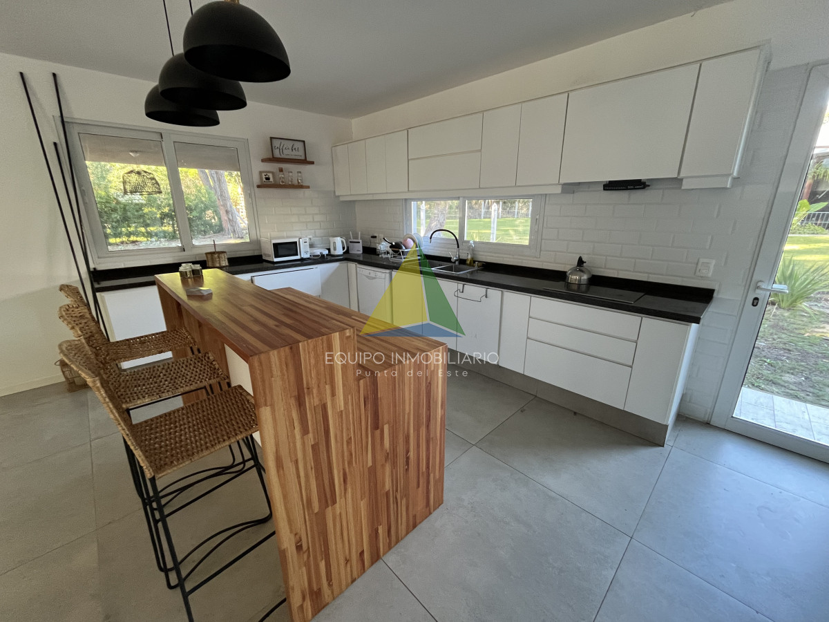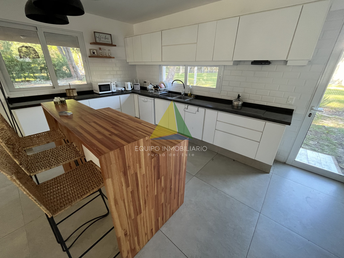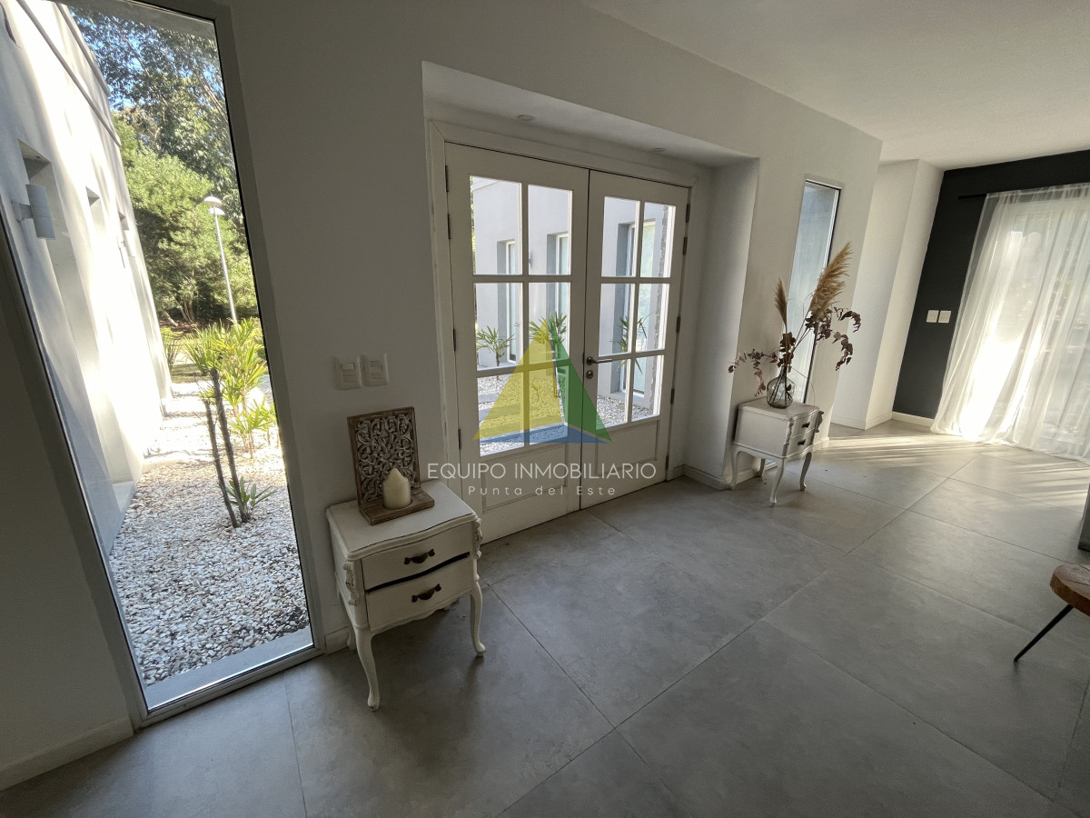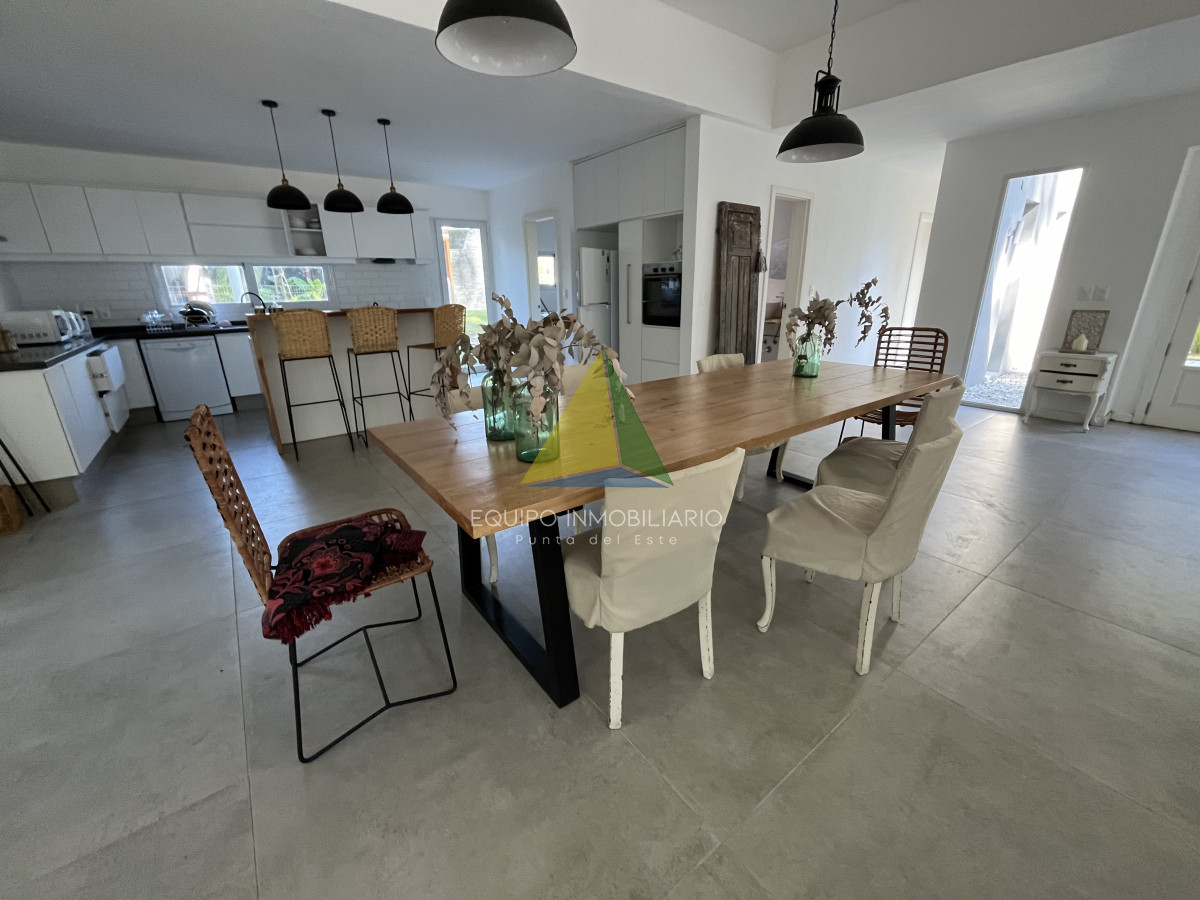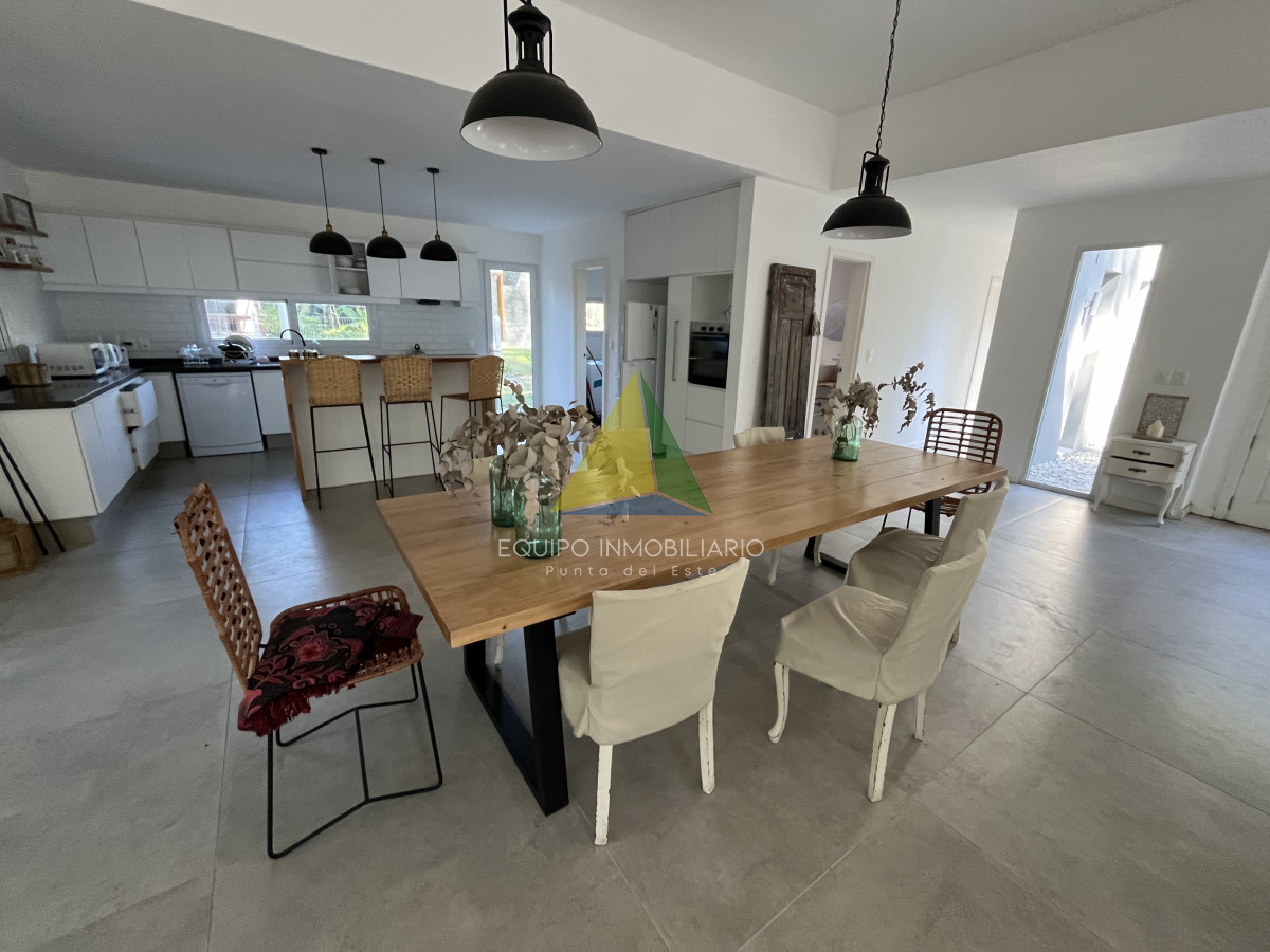 Venta casa, Desing village. Punta Del Este. - Ref : EQP7730 Ubicada dentro de un barrio privado en una de las zonas más tranquilas y exclusivas de Punta Ballena, esta propiedad ofrece el entorno perfecto para disfrutar de confort, seguridad y naturaleza. La casa se desarrolla sobre un terreno de 1010 m² y cuenta con 260 m² construidos. Dispone de 3 dormitorios y 3 baños, garantizando comodidad para toda la familia o invitados. El espacio social se compone de un luminoso living-comedor integrado con una cocina estilo americana, ideal para compartir buenos momentos en un ambiente moderno y funcional. Una excelente oportunidad para quienes buscan calidad de vida en un entorno natural y exclusivo.
