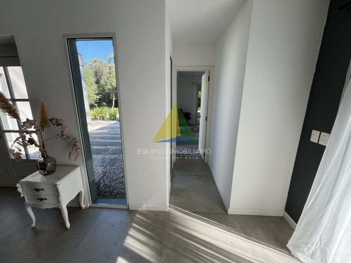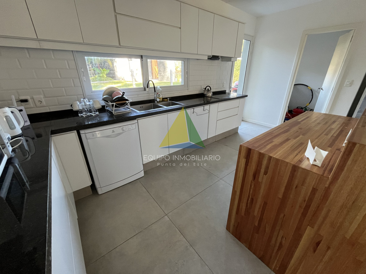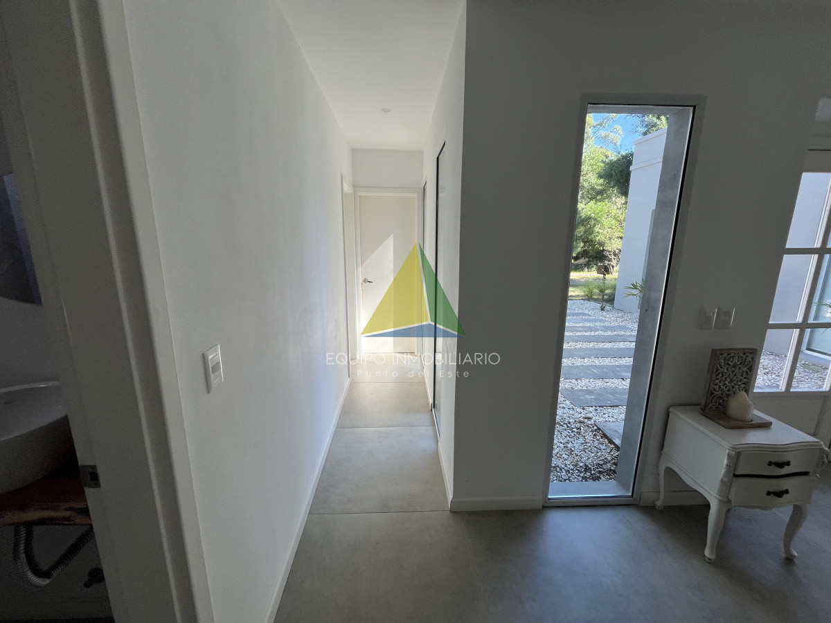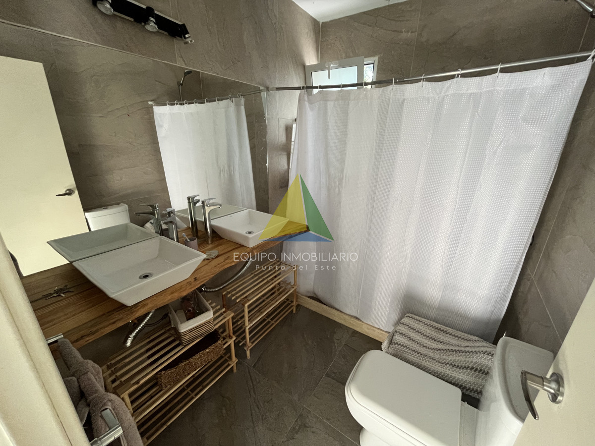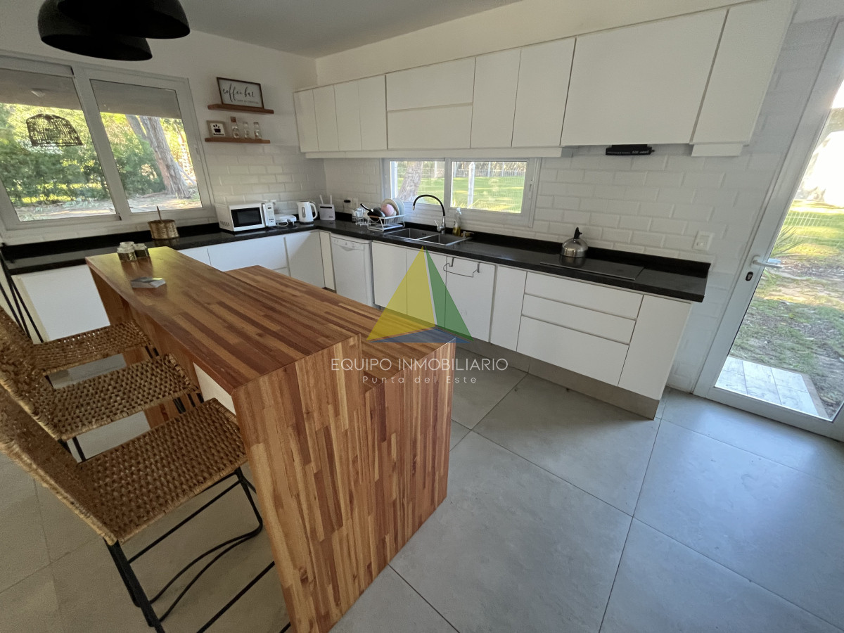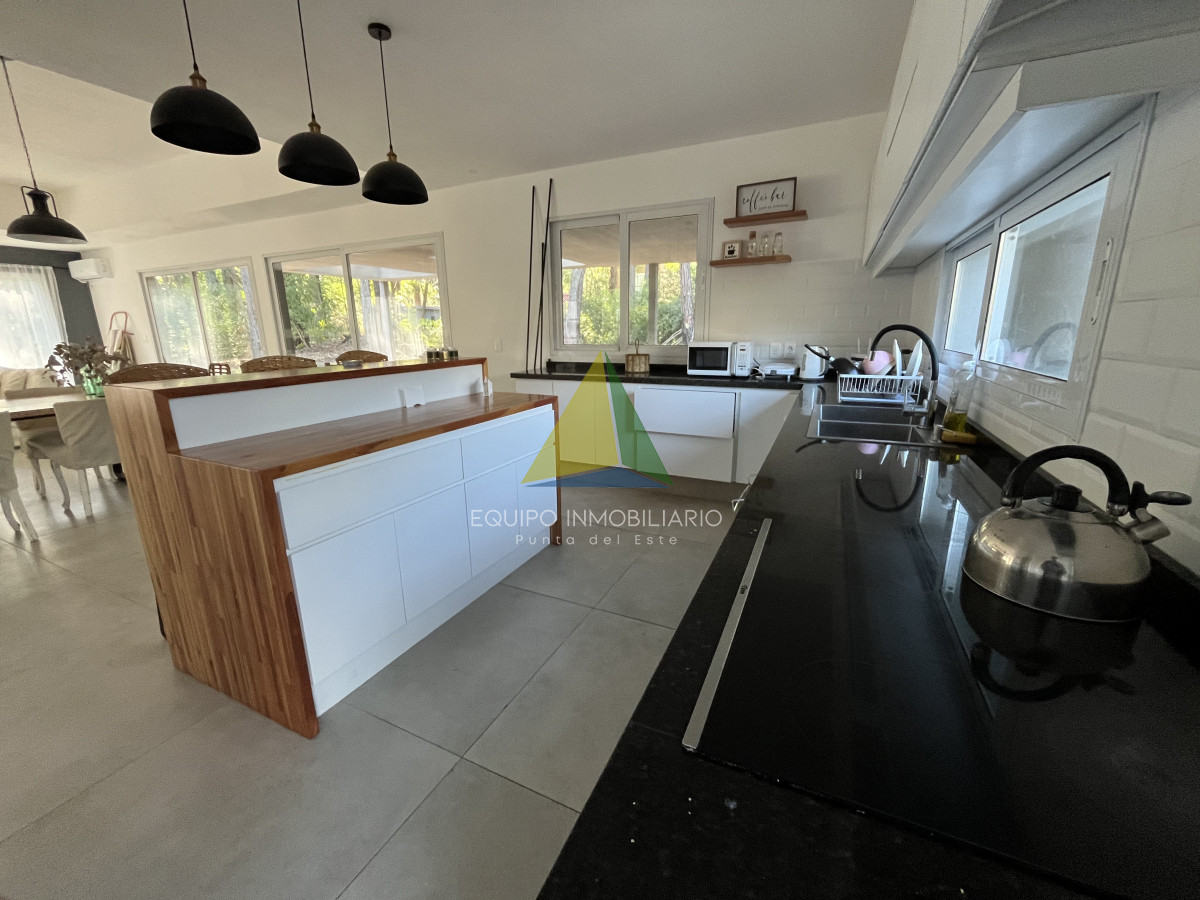 Venta casa, Desing village. Punta Del Este. - Ref : EQP7730 Ubicada dentro de un barrio privado en una de las zonas más tranquilas y exclusivas de Punta Ballena, esta propiedad ofrece el entorno perfecto para disfrutar de confort, seguridad y naturaleza. La casa se desarrolla sobre un terreno de 1010 m² y cuenta con 260 m² construidos. Dispone de 3 dormitorios y 3 baños, garantizando comodidad para toda la familia o invitados. El espacio social se compone de un luminoso living-comedor integrado con una cocina estilo americana, ideal para compartir buenos momentos en un ambiente moderno y funcional. Una excelente oportunidad para quienes buscan calidad de vida en un entorno natural y exclusivo.