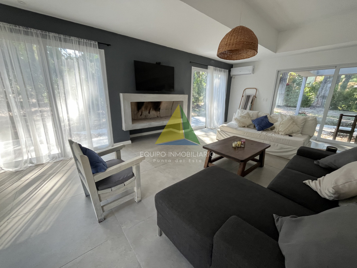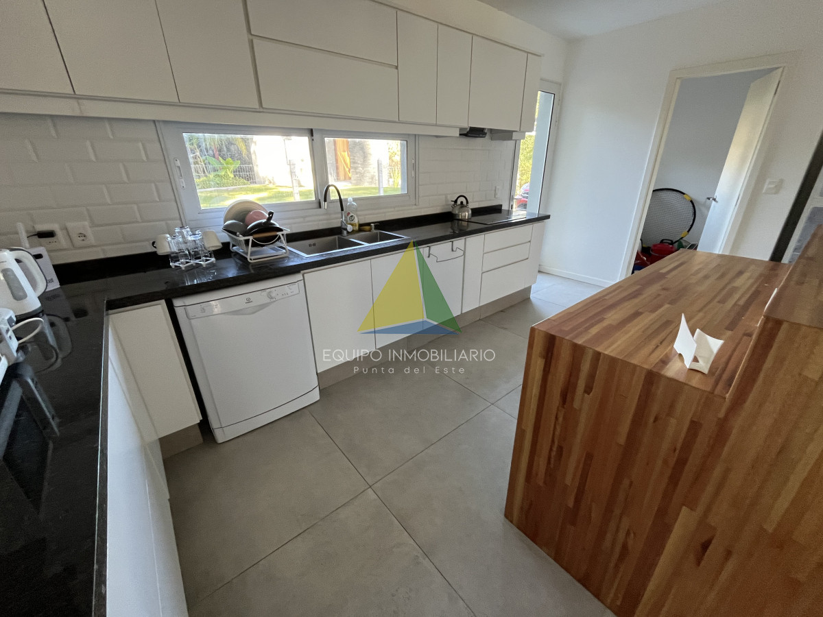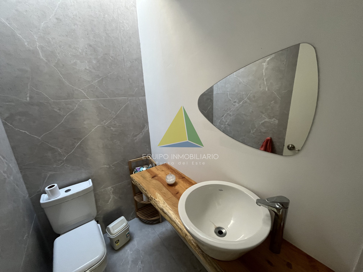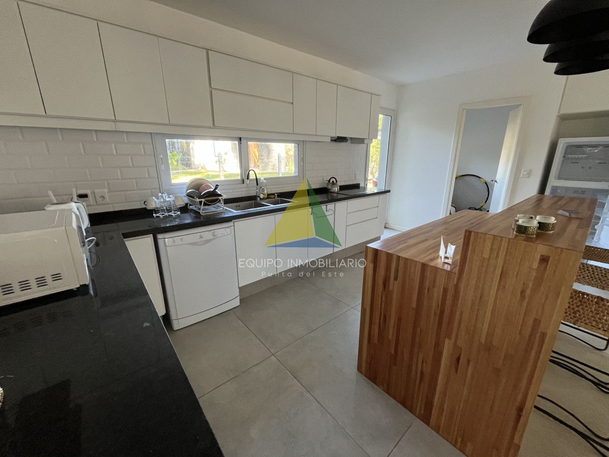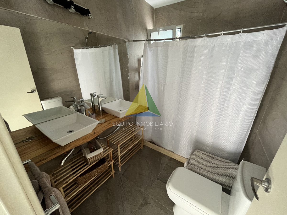 Venta casa, Desing village. Punta Del Este. - Ref : EQP7730 Ubicada dentro de un barrio privado en una de las zonas más tranquilas y exclusivas de Punta Ballena, esta propiedad ofrece el entorno perfecto para disfrutar de confort, seguridad y naturaleza. La casa se desarrolla sobre un terreno de 1010 m² y cuenta con 260 m² construidos. Dispone de 3 dormitorios y 3 baños, garantizando comodidad para toda la familia o invitados. El espacio social se compone de un luminoso living-comedor integrado con una cocina estilo americana, ideal para compartir buenos momentos en un ambiente moderno y funcional. Una excelente oportunidad para quienes buscan calidad de vida en un entorno natural y exclusivo.