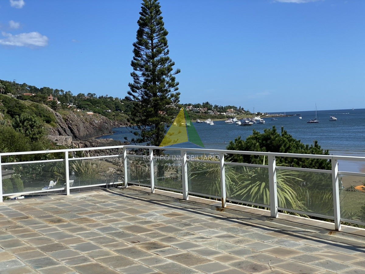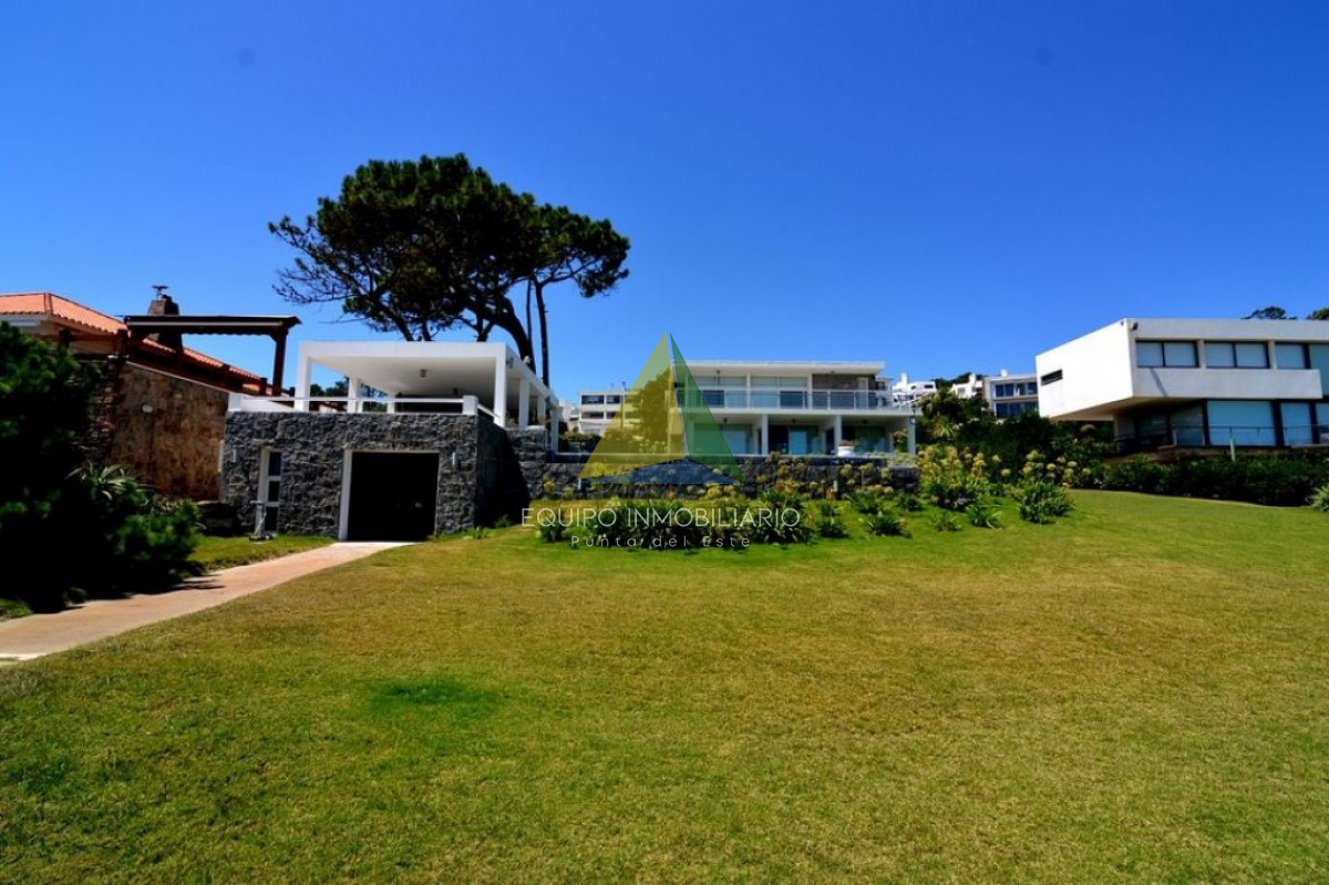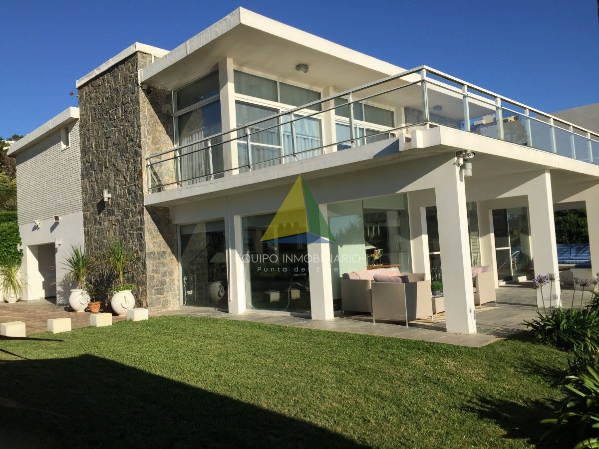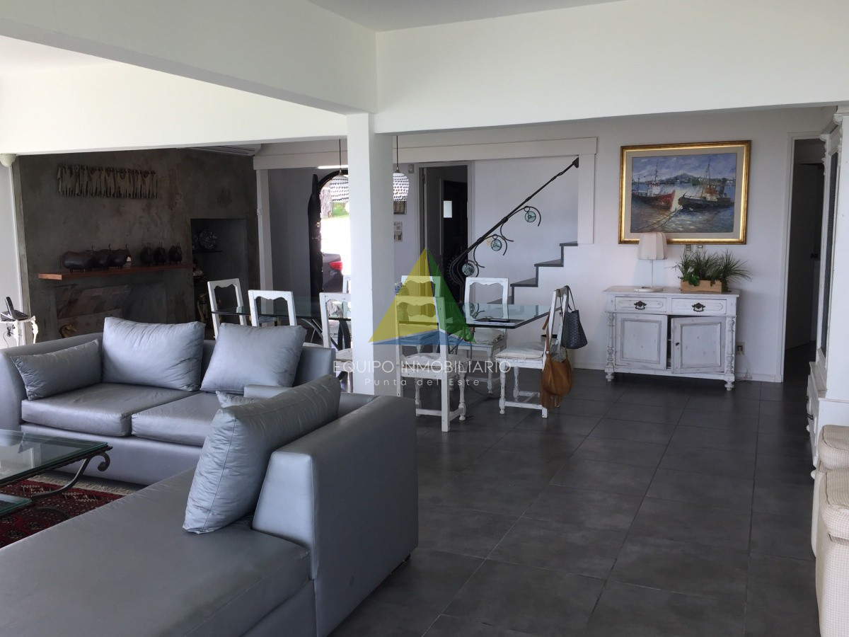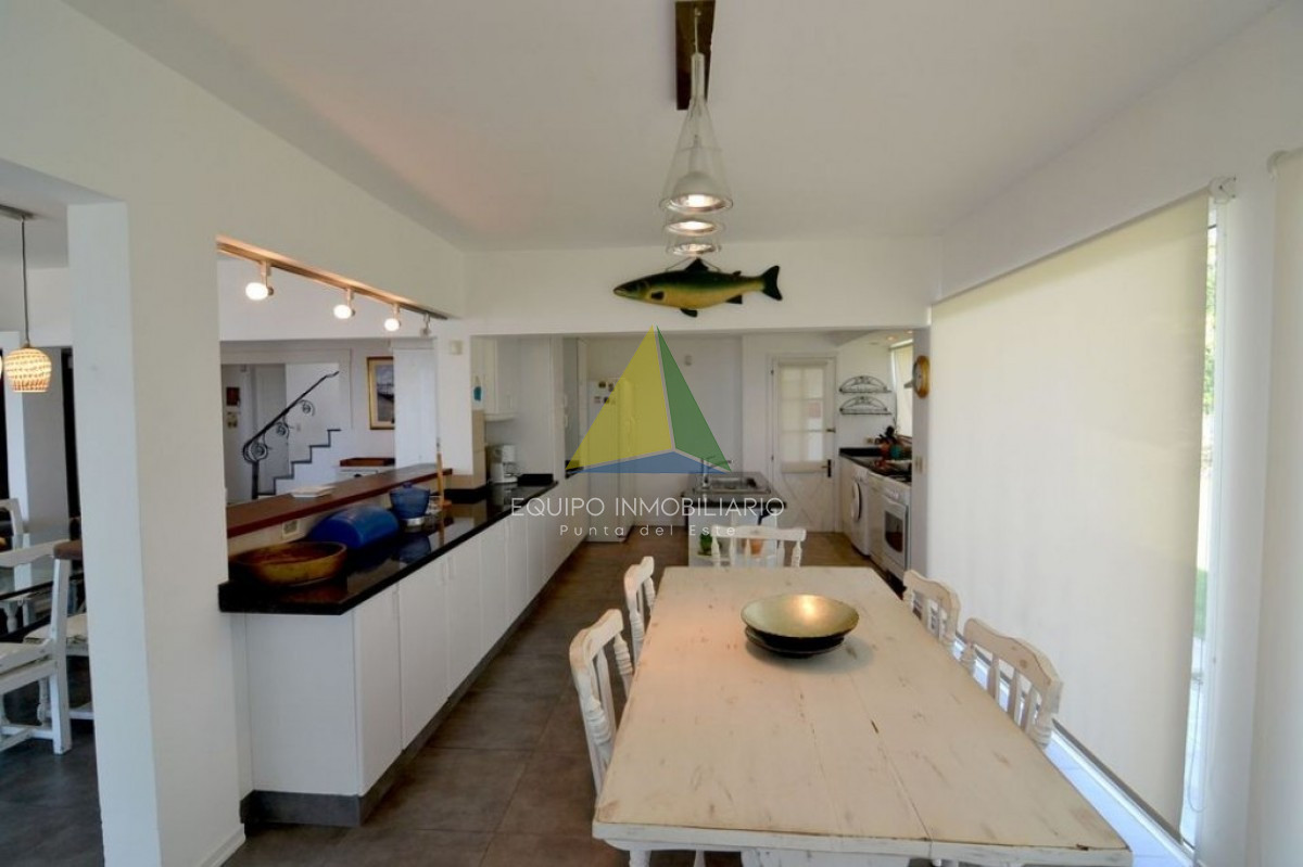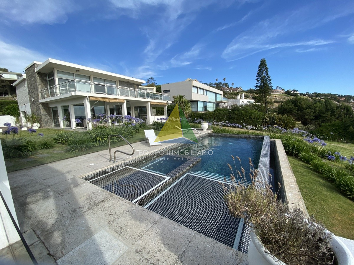 Clásico chalet en salida l mar, ambientes amplios luminosos con vista directa a la bahía, amplio living comedor, cocina integrada estilo americana con comedor diario, 4 dormitorios, tres baños completos, suite principal con gran balcón a los pié de la costa y jardín, servicio integrado con baño, estar con parrillero, piscina, jardín, alarma, wi-fi en una de las zonas mas buscada de Punta Ballena.