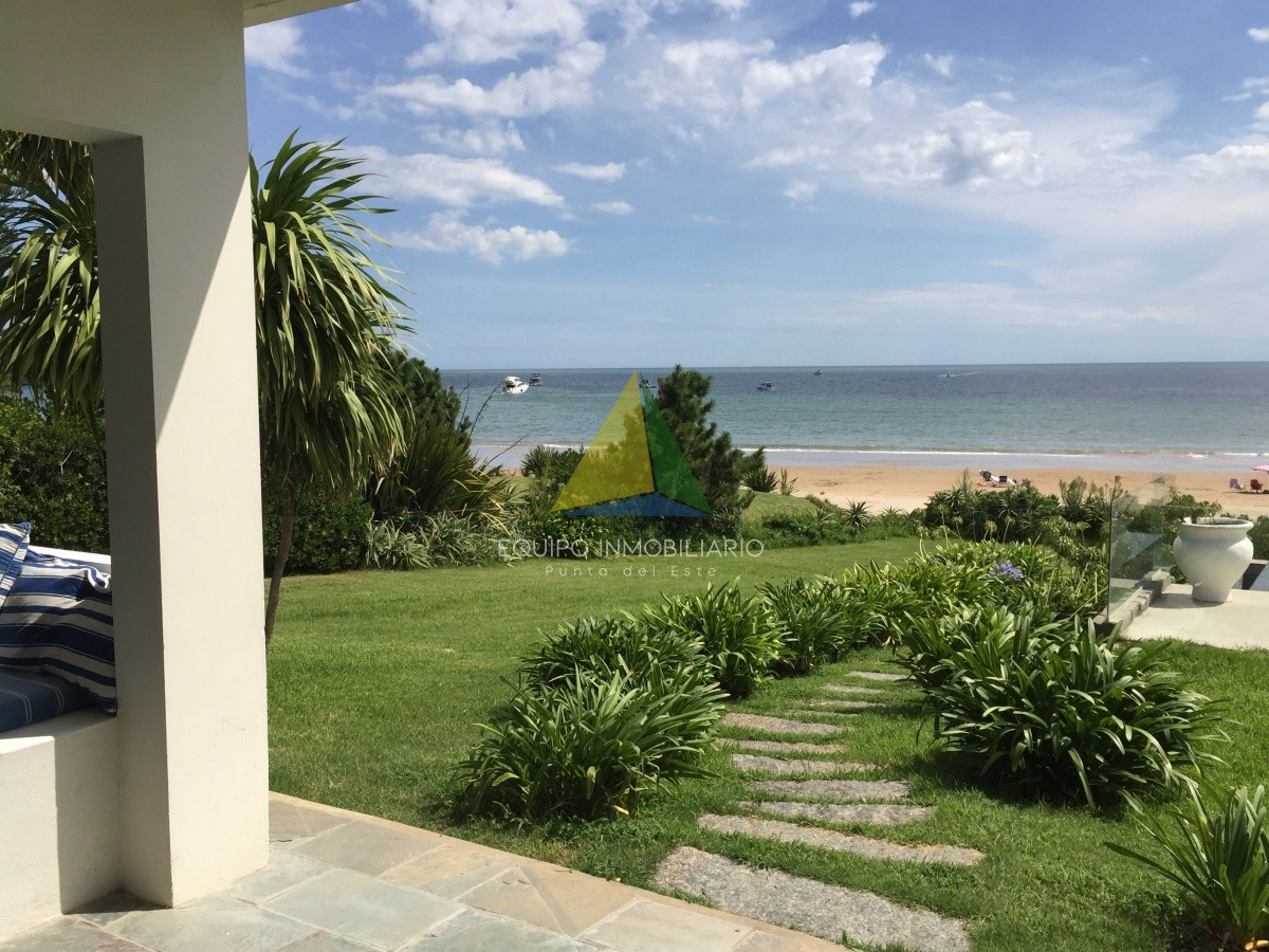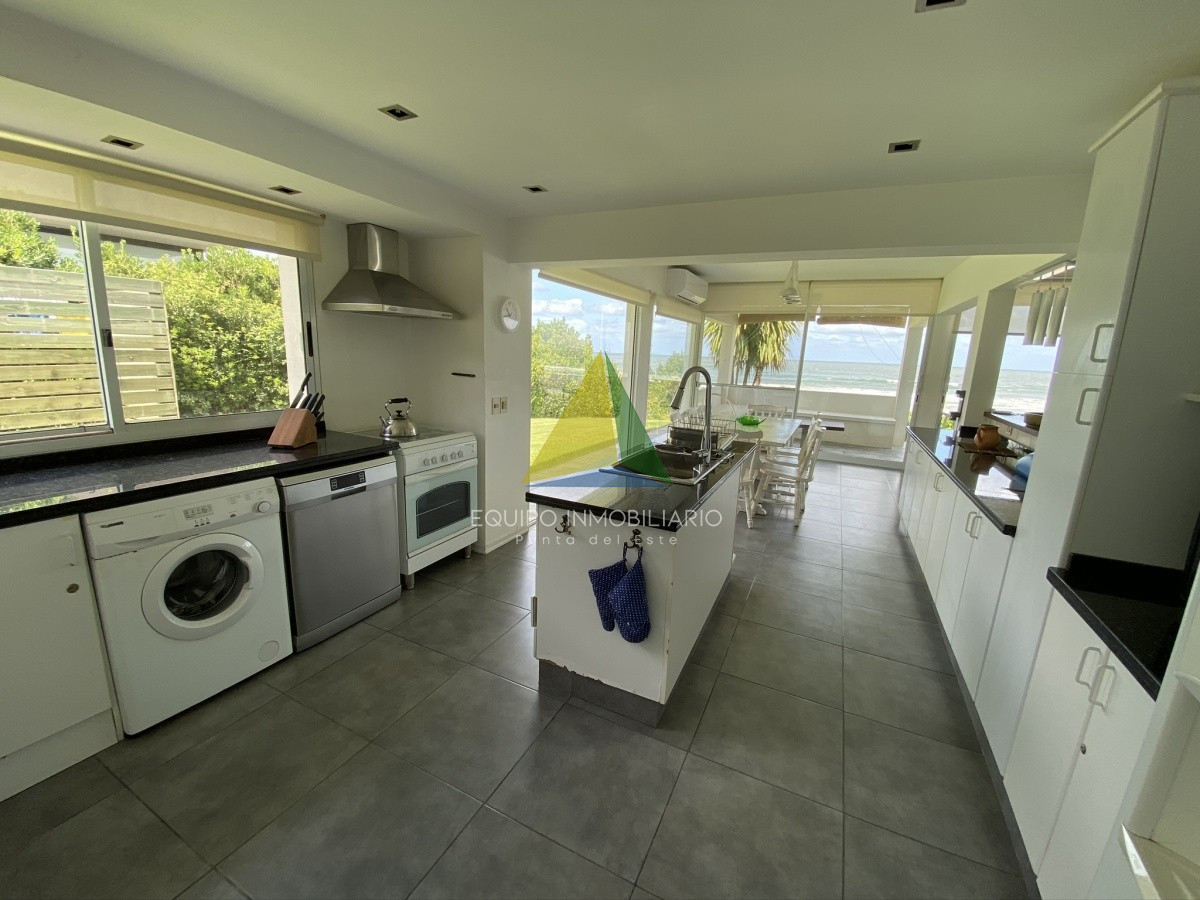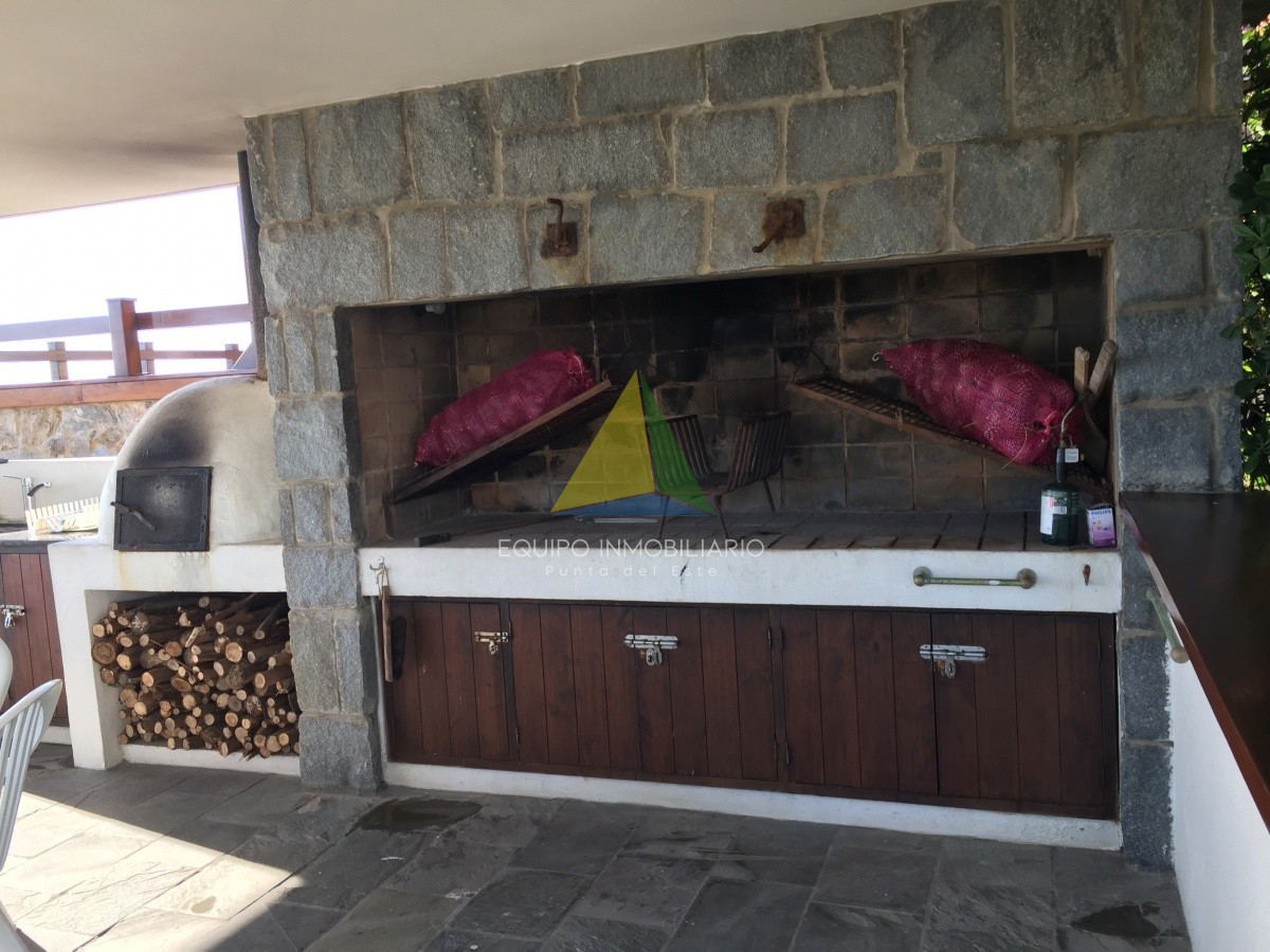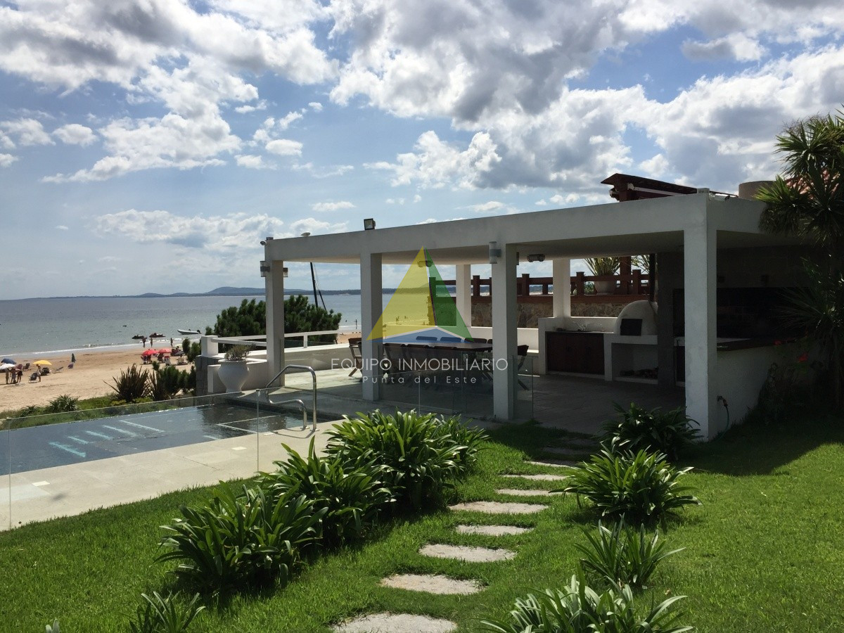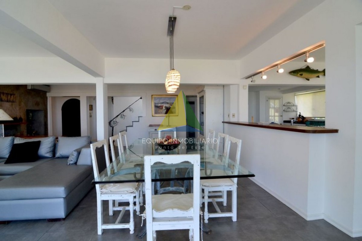 Clásico chalet en salida l mar, ambientes amplios luminosos con vista directa a la bahía, amplio living comedor, cocina integrada estilo americana con comedor diario, 4 dormitorios, tres baños completos, suite principal con gran balcón a los pié de la costa y jardín, servicio integrado con baño, estar con parrillero, piscina, jardín, alarma, wi-fi en una de las zonas mas buscada de Punta Ballena.