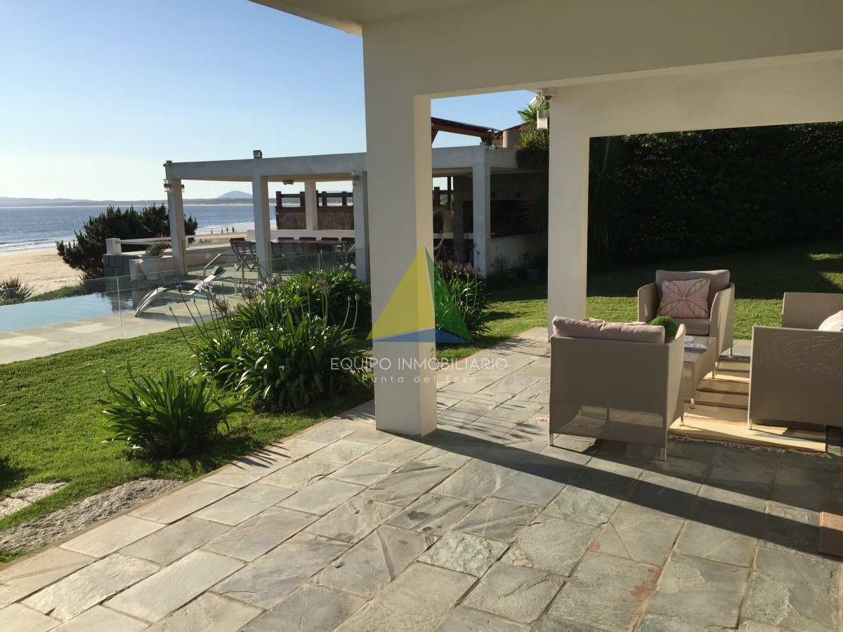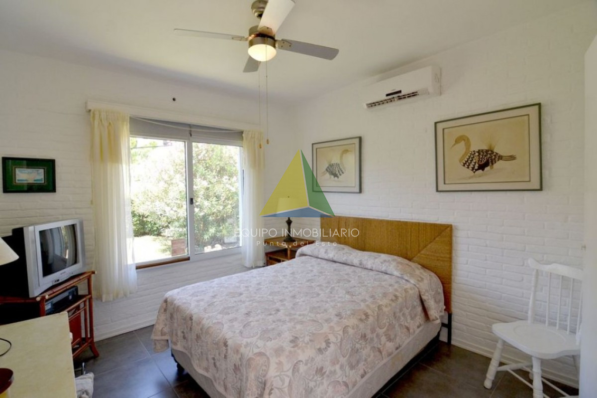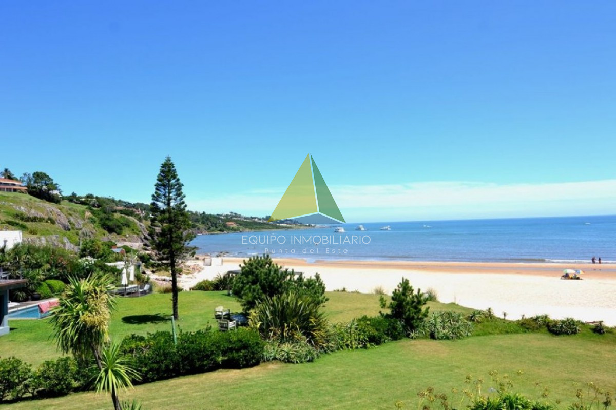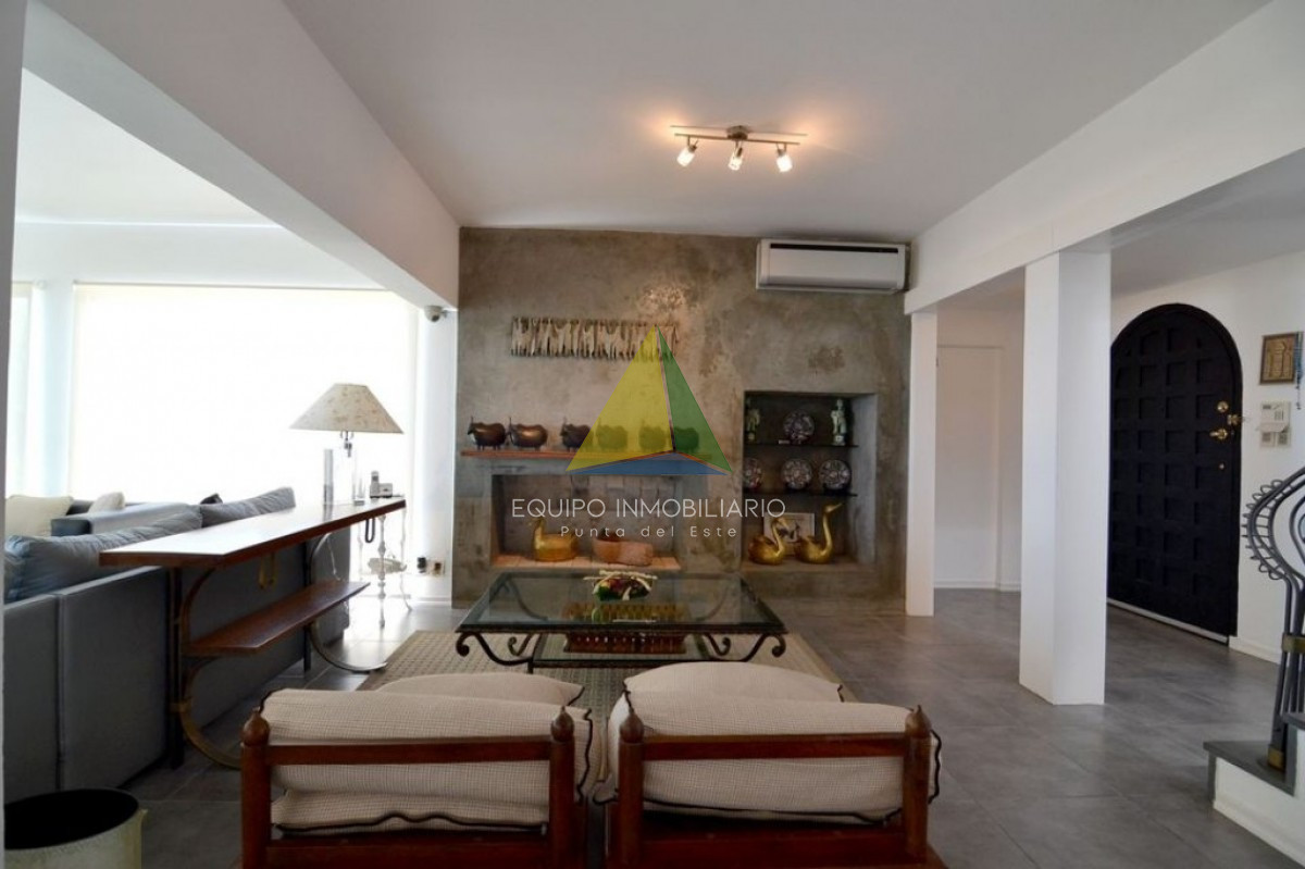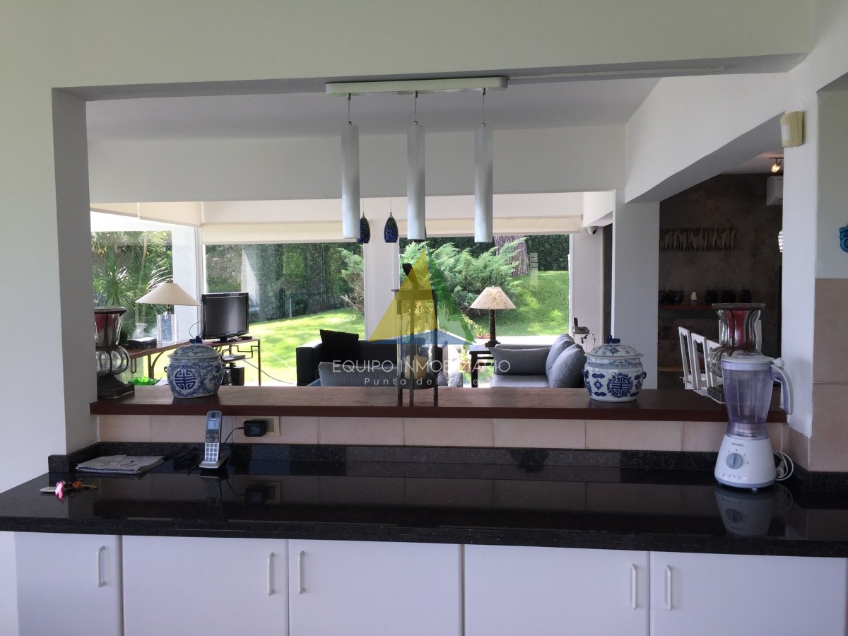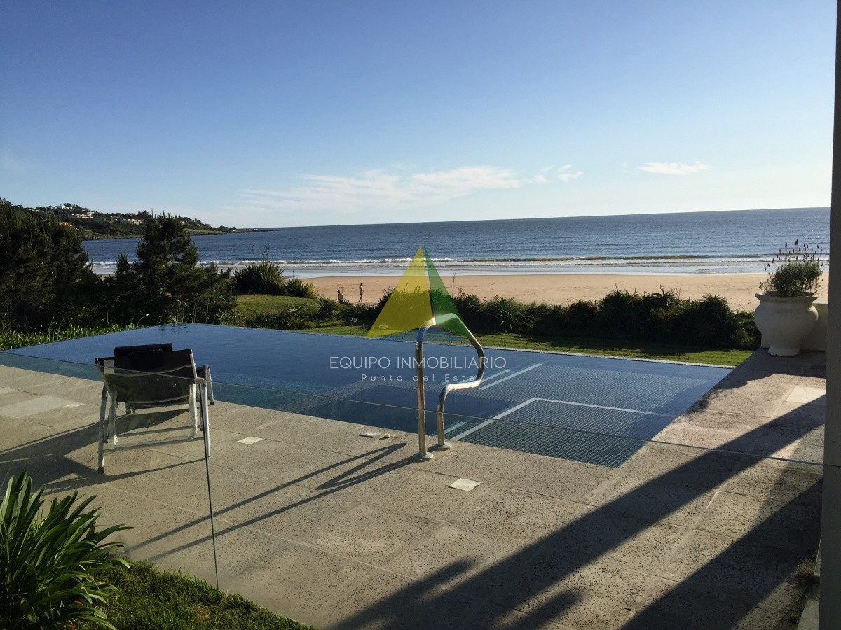 Clásico chalet en salida l mar, ambientes amplios luminosos con vista directa a la bahía, amplio living comedor, cocina integrada estilo americana con comedor diario, 4 dormitorios, tres baños completos, suite principal con gran balcón a los pié de la costa y jardín, servicio integrado con baño, estar con parrillero, piscina, jardín, alarma, wi-fi en una de las zonas mas buscada de Punta Ballena.