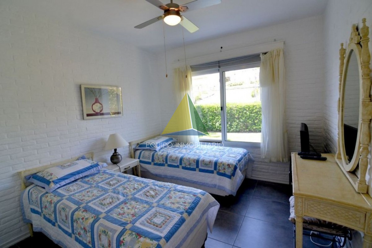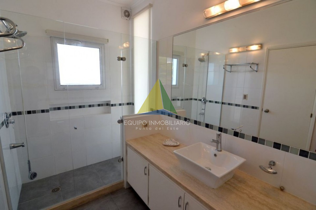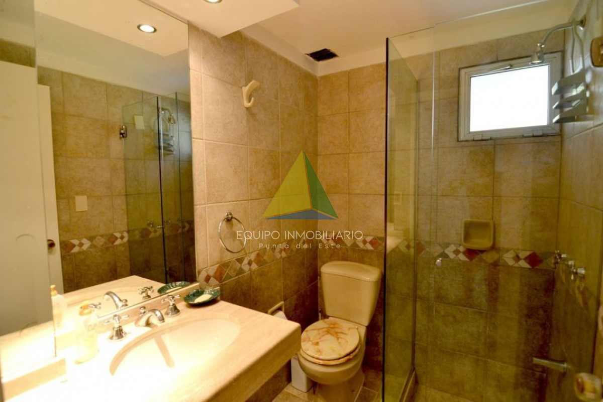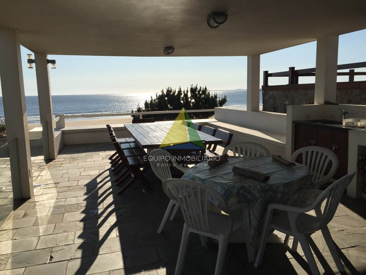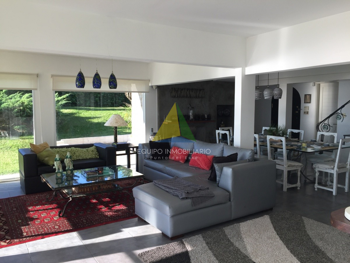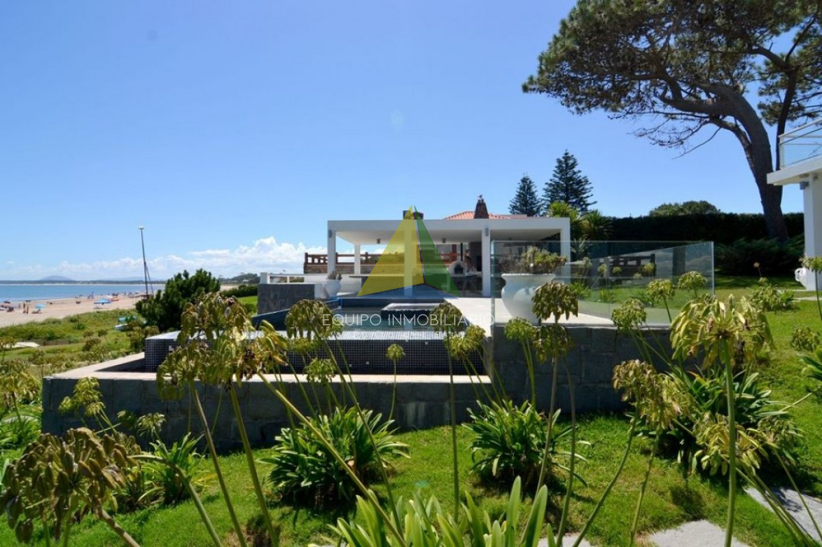 Clásico chalet en salida l mar, ambientes amplios luminosos con vista directa a la bahía, amplio living comedor, cocina integrada estilo americana con comedor diario, 4 dormitorios, tres baños completos, suite principal con gran balcón a los pié de la costa y jardín, servicio integrado con baño, estar con parrillero, piscina, jardín, alarma, wi-fi en una de las zonas mas buscada de Punta Ballena.