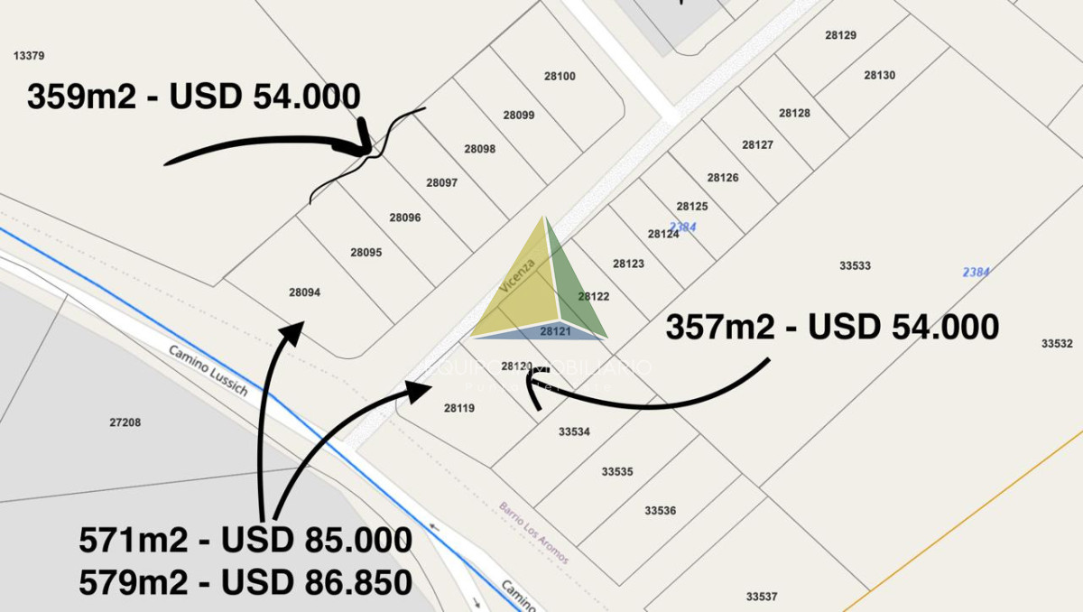 Terrenos Av Lusich zona ideal Logistica y Comercial o PH 50% Fot - Ref : EQP8000 Terreno 357 m2 , en Los Aromos - Maldonado Lateral : 35 mts Frente : 14 mts Porcentaje Edificable : 357 % Cantidad de Pisos Construibles : 2 Consulte con nuestros asesores. Terreno Esquina 571 m2 , Frente a Camino Lussich Porcentaje Edificable : 571 % Cantidad de Pisos Construibles : 2 Precio USD 85.000